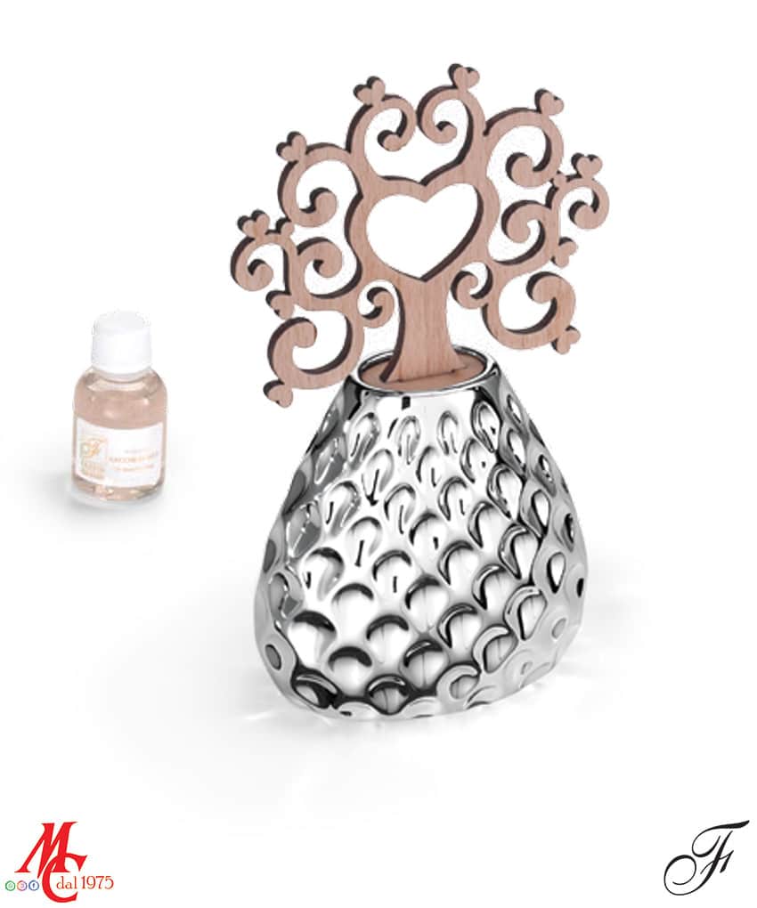Bomboniera – Profumatore Goccia Argento con Albero della Vita in Legno