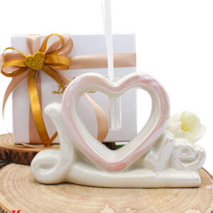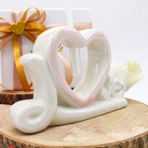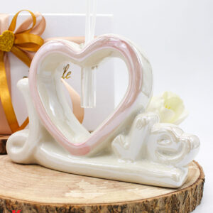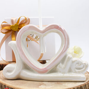 Un tocco di romanticismo per rendere indimenticabile ogni occasione speciale. Il profumatore LOVE con cuore in porcellana rosa, con le sue eleganti dimensioni di 16,5×4,5×h.11 cm, è la scelta perfetta come bomboniera per matrimoni, battesimi, comunioni o eventi raffinati.