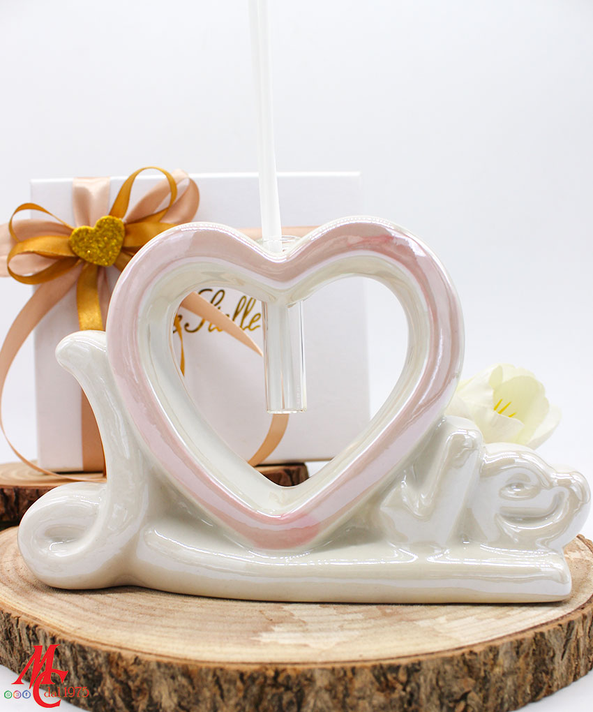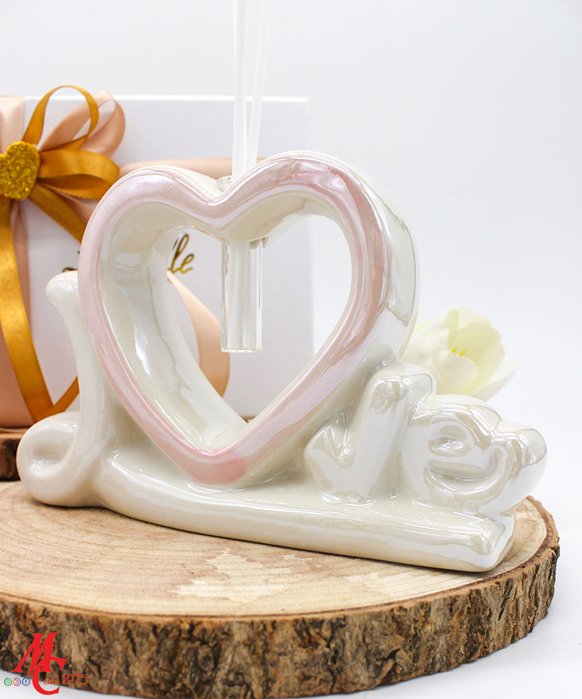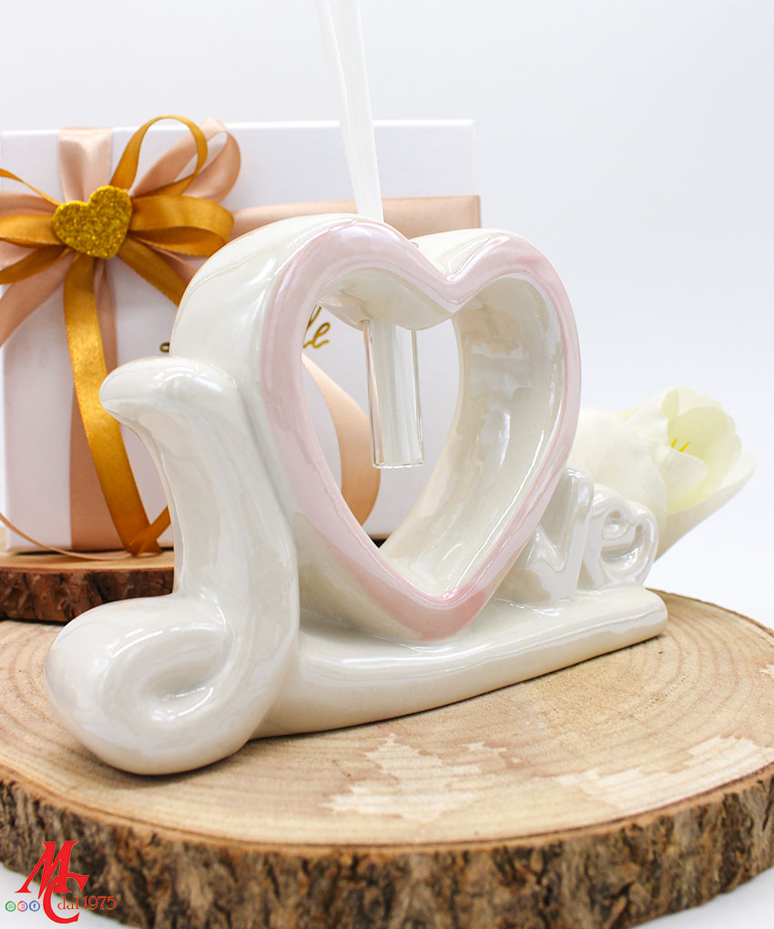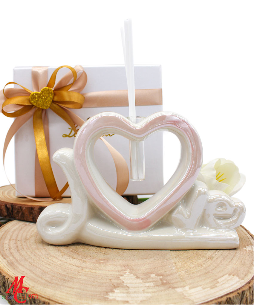 profumatore love, bomboniera love porcellana, bomboniera profumatore rosa, bomboniera matrimonio elegante, bomboniera cuore love, bomboniera con astuccio, bomboniera con confetti