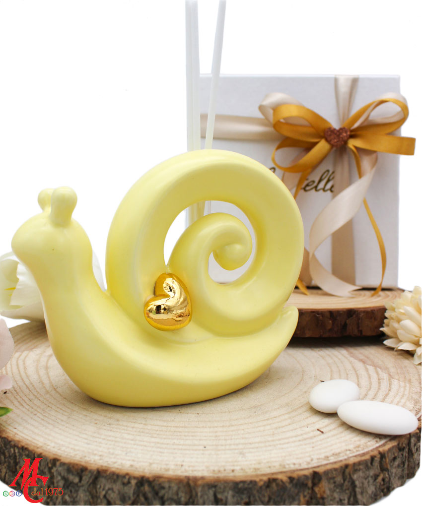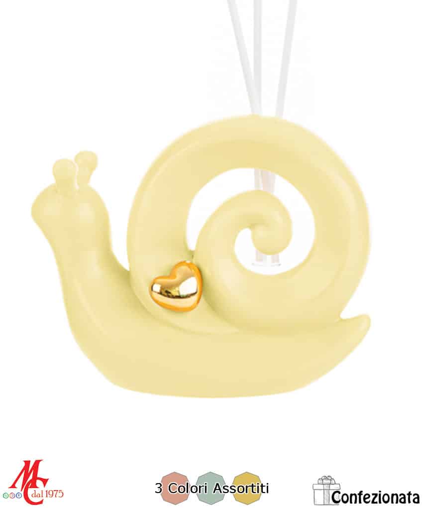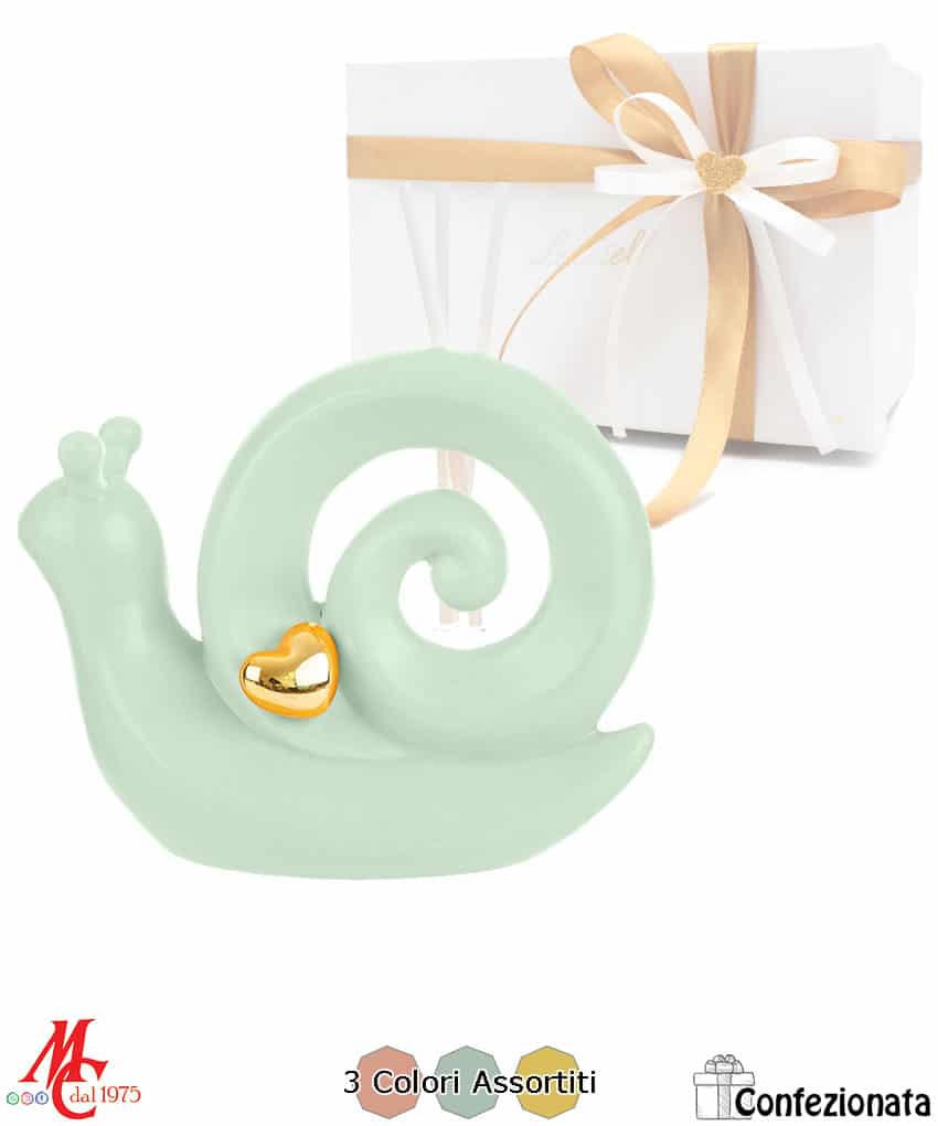 Bomboniera Profumatore Lumaca in Porcellana – 3 Colori Pastello Assortiti – Completa di Confezione