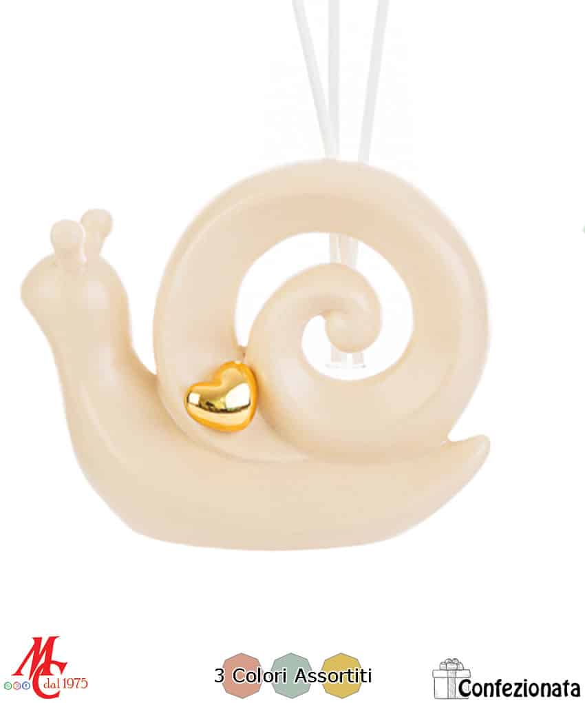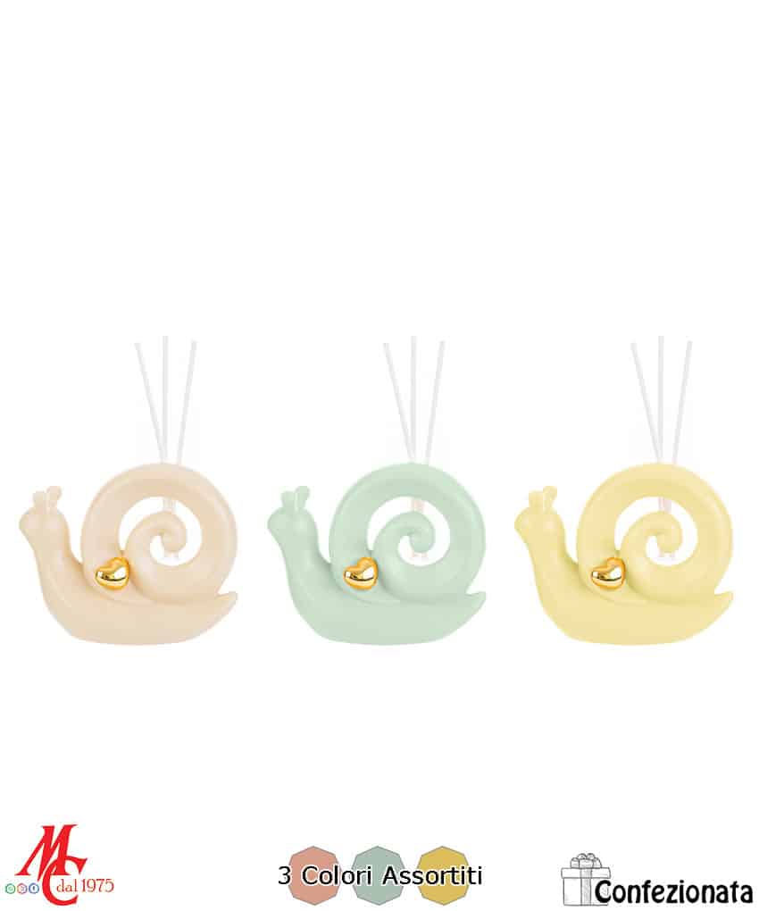 Scegli la Bomboniera Profumatore Lumaca in Porcellana per aggiungere un tocco di classe e delicatezza al tuo evento speciale. Con i suoi tre colori assortiti pastello e il design curato, è un ricordo che durerà nel tempo e che diffonderà una piacevole fragranza nell’ambiente.