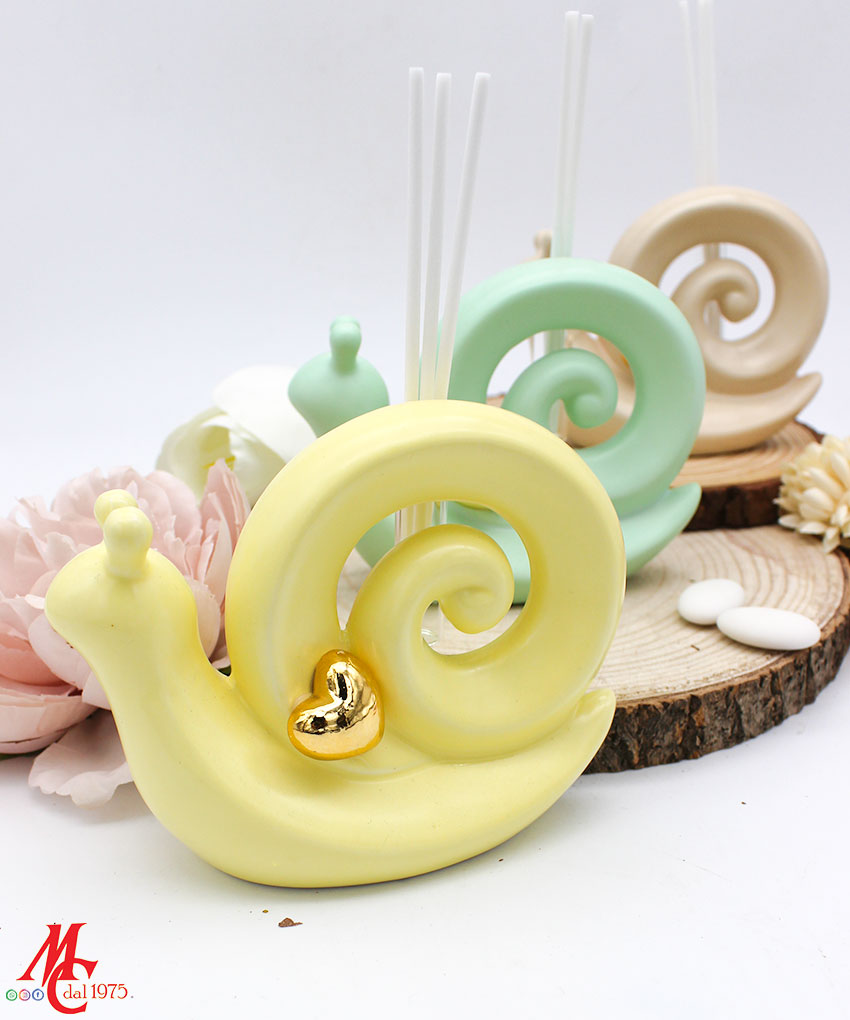 Bomboniera Profumatore Lumaca in Porcellana – 3 Colori Pastello Assortiti