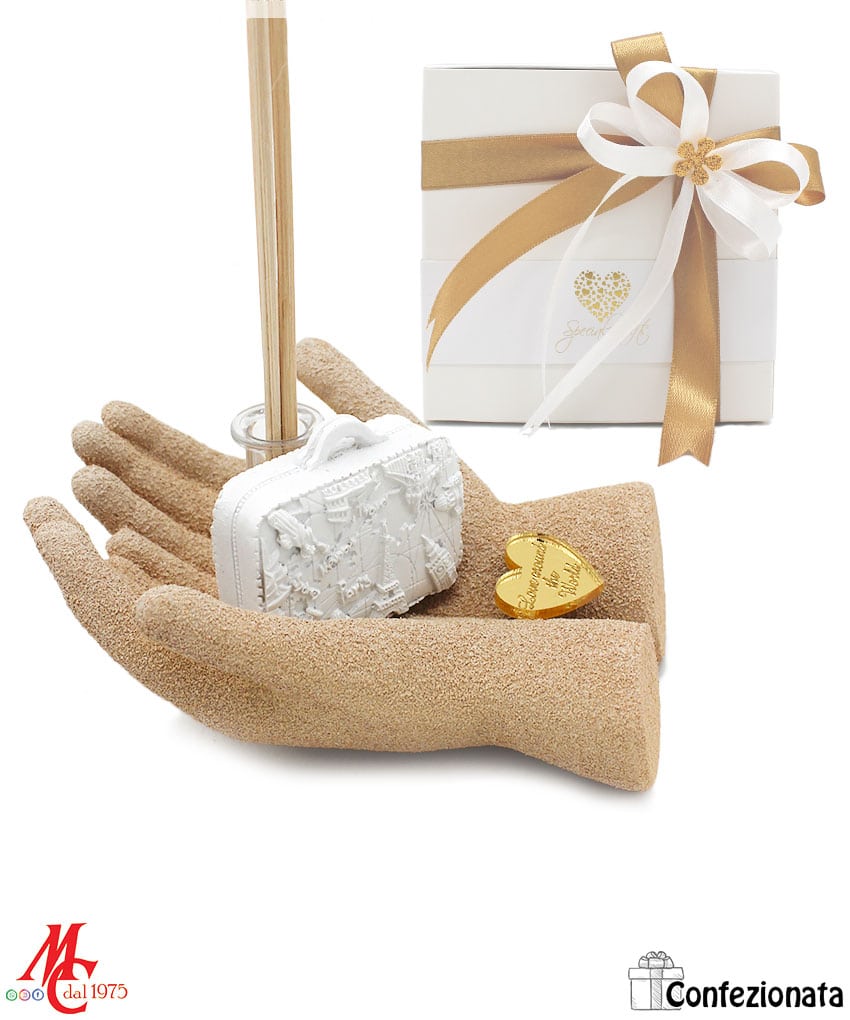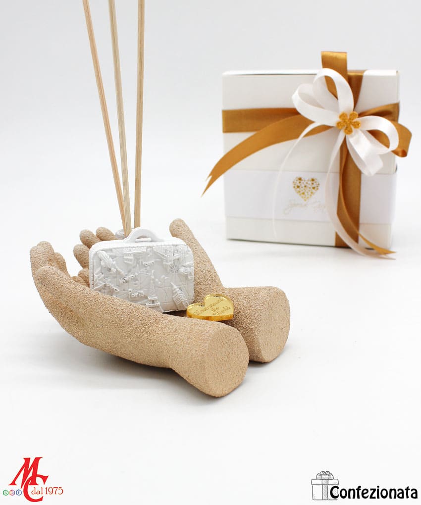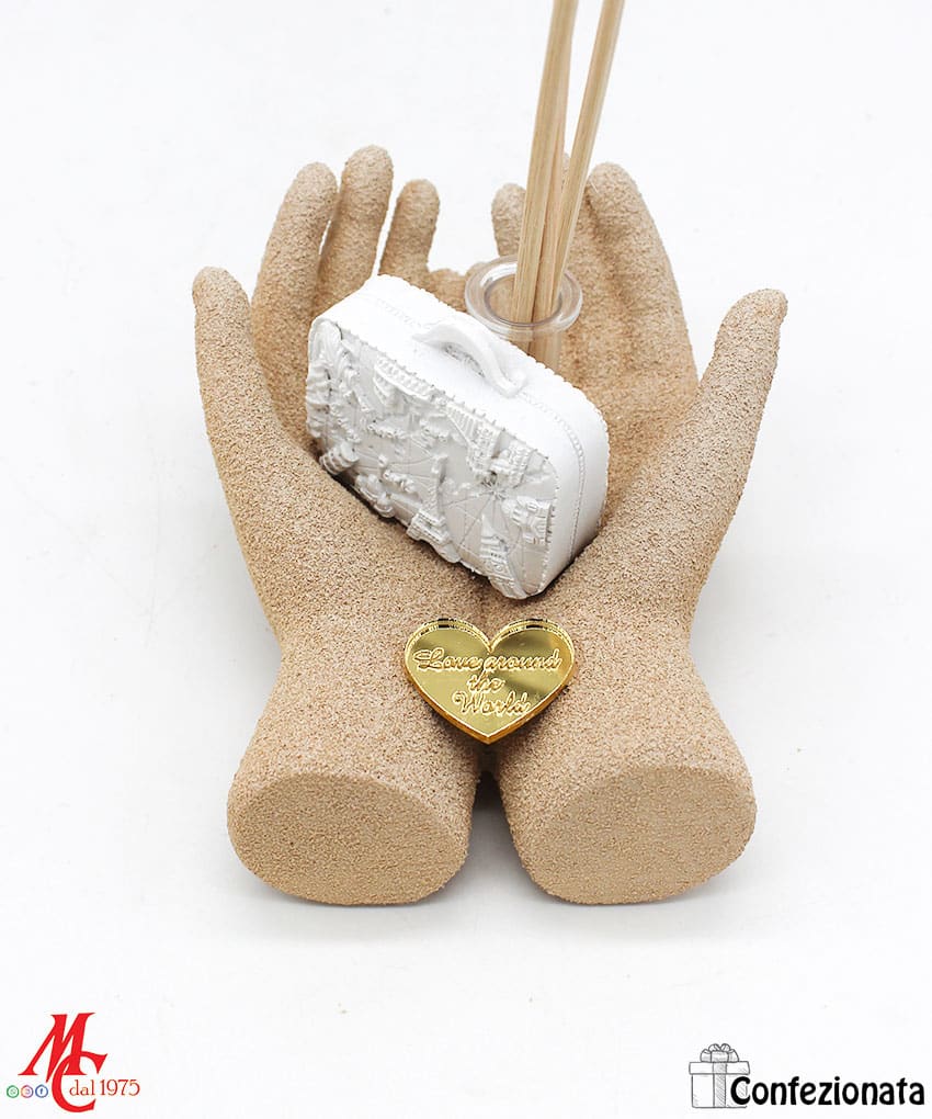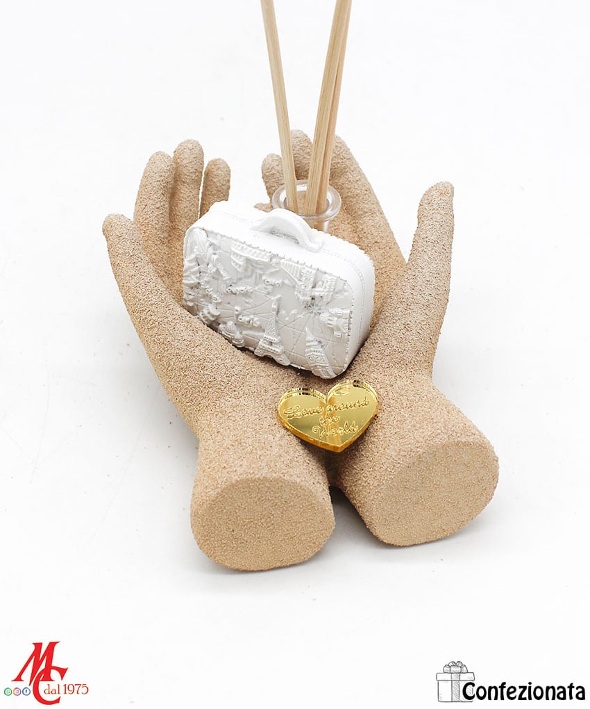 Bomboniera Profumatore – Mani con Valigia Word
