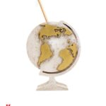 • Materiale: La base è realizzata in pregiata polvere di marmo, mentre il mappamondo è in elegante colore Oro.