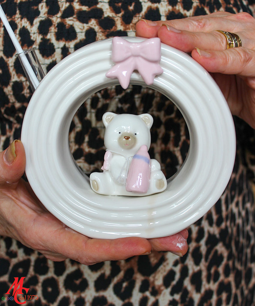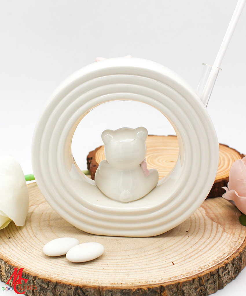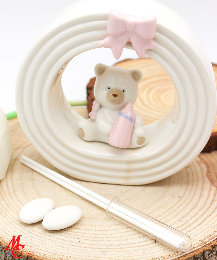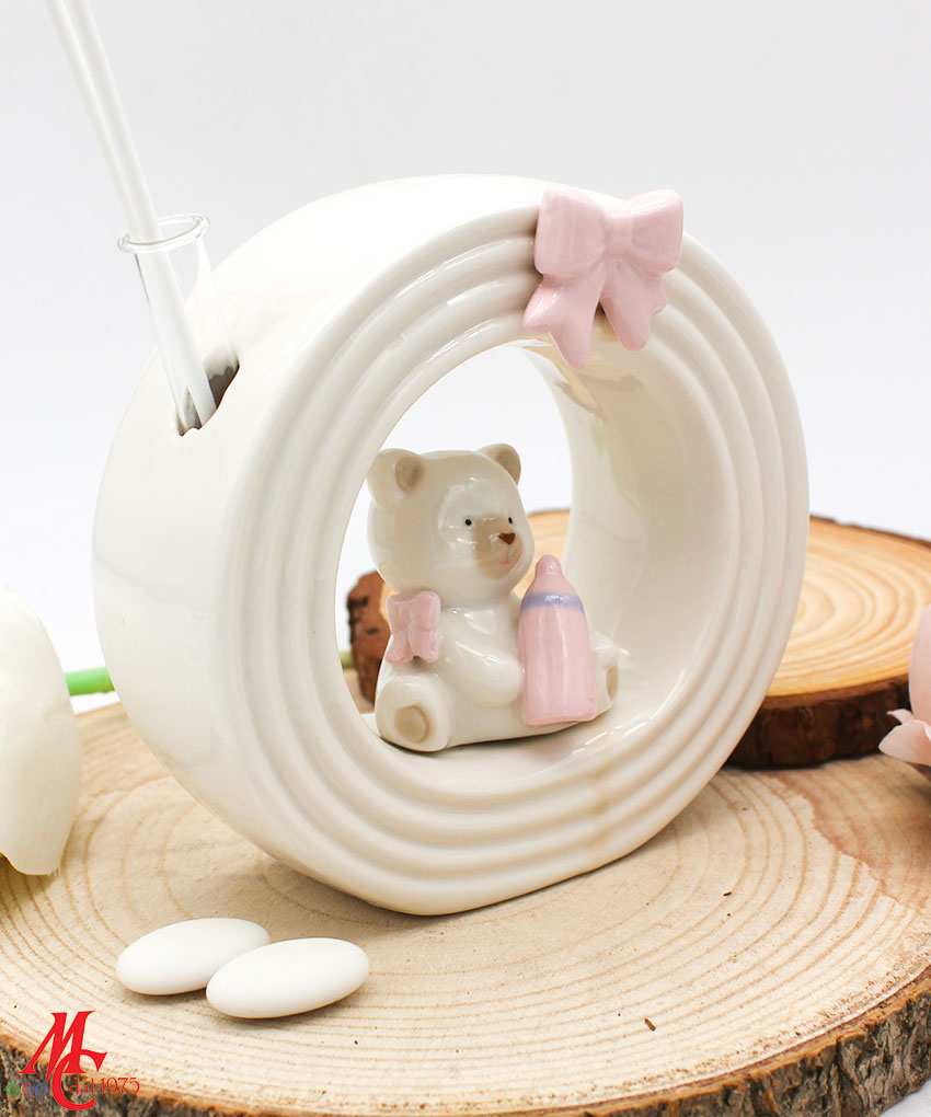 Il Profumatore Orsetto con Biberon Rosa presenta un adorabile orsetto in porcellana bianca che tiene un biberon di colore rosa. I dettagli raffinati e curati rendono questo oggetto non solo funzionale, ma anche estremamente decorativo.