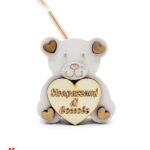 Bomboniera Profumatore Orsetto con Frase “Strapazzami di Coccole” – Polvere di Marmo e Legno, Colori Bianco e Marrone, Misure 8 cm x 9 cm