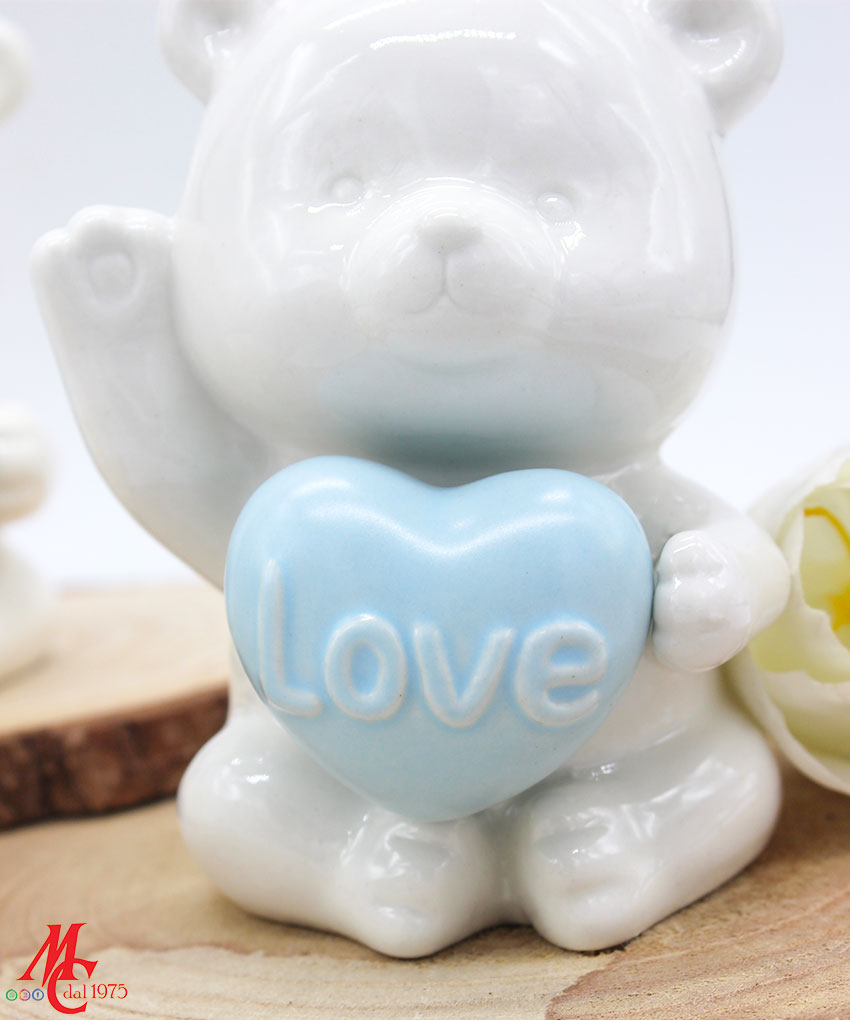 Bomboniera Profumatore Orsetto Cuore in Porcellana Celeste