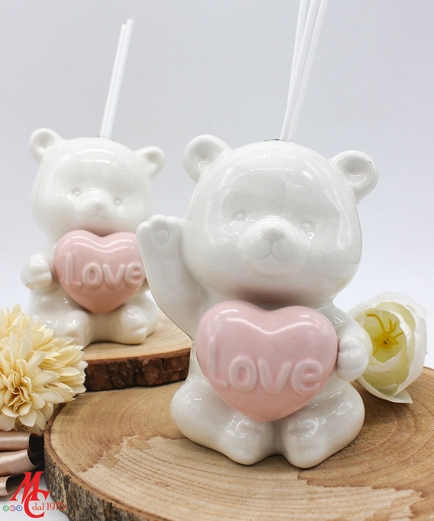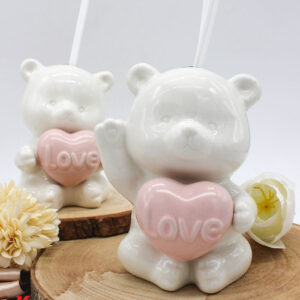 Bomboniera Profumatore Orsetto Cuore in Porcellana Rosa – 2 Varianti Assortite