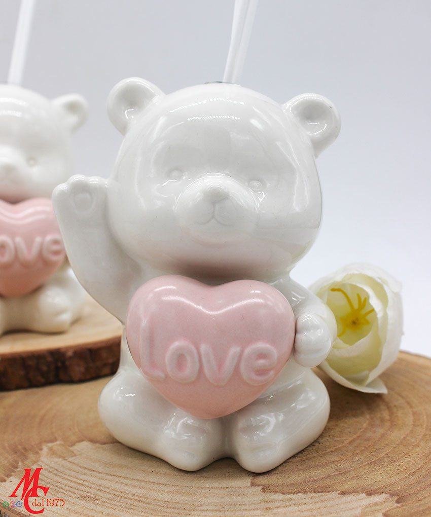 Bomboniera Profumatore Orsetto Cuore in Porcellana Rosa