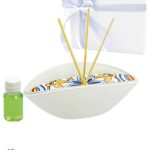 Con le sue dimensioni di 16,5×6 cm, il profumatore ovale si adatta perfettamente a qualsiasi spazio, aggiungendo un tocco di stile e profumazione piacevole. Le decorazioni maioliche blu/giallo impreziosiscono il design, creando un effetto visivamente accattivante e raffinato.