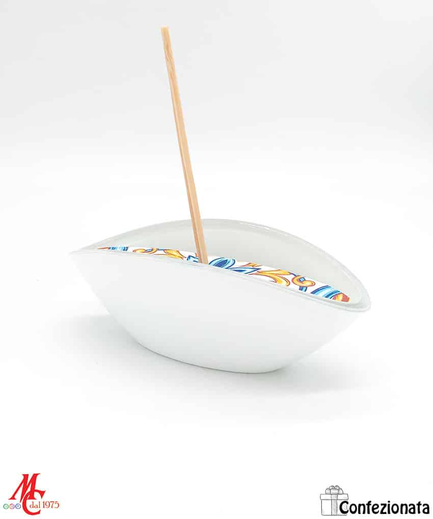Bomboniera ConfezionataProfumatore ovale decoro maioliche blu/giallo