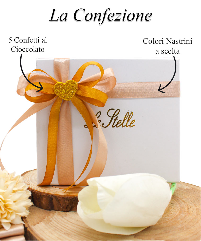 Tutte le foto delle bomboniere presenti sul sito hanno esclusivamente scopo illustrativo. Eventuali lievi variazioni nei dettagli possono verificarsi senza preavviso. Gli oggetti di scena utilizzati per l’allestimento fotografico non sono inclusi nel prezzo.