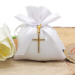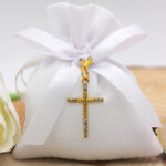Cerchi una bomboniera semplice ma d’effetto per un evento religioso? Questo sacchettino bianco con charm a forma di crocetta oro e strass è la soluzione ideale per cerimonie come battesimo, comunione o cresima, ma anche perfetto per altre occasioni speciali.