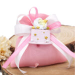 Rendi il tuo evento ancora più speciale con questa dolcissima bomboniera sacchettino rosa, impreziosita da un’elegante applicazione a forma di tortina con orsetto che dorme sulla luna, circondato da stelle dorate. Perfetta per battesimi, nascite e baby shower, questa bomboniera è un ricordo unico e raffinato per i tuoi invitati.
