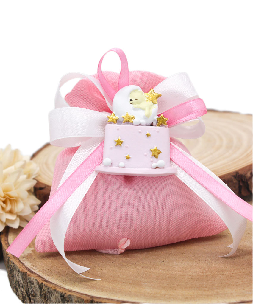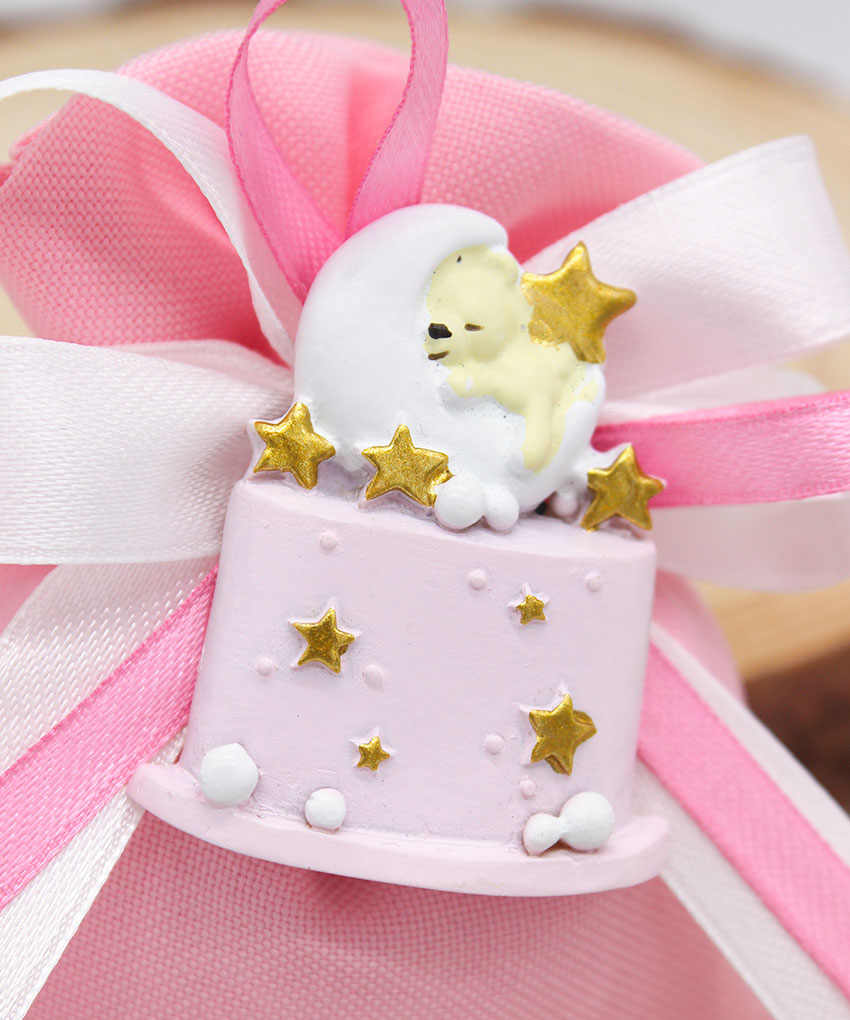 Bomboniera / Bomboniera Sacchettino Rosa con Magnete Orsetto su Luna ✨