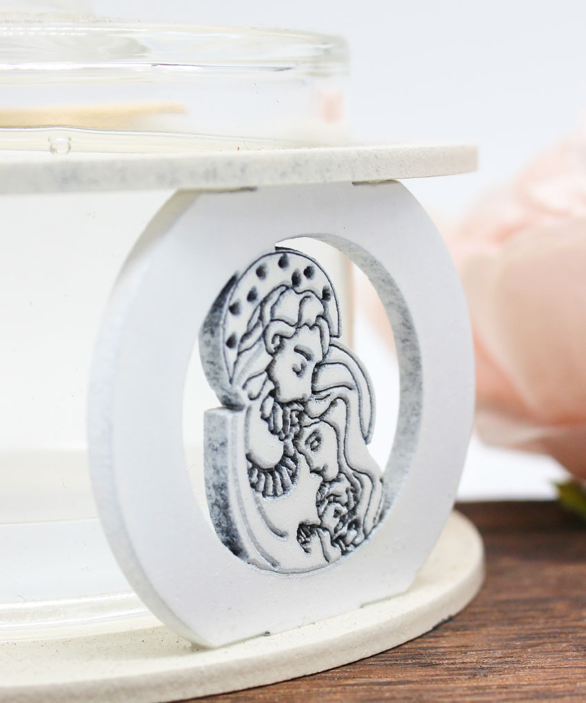 Bomboniera Sacra Famiglia Economica – Profumatore Legno e Vetro con Boccia Grande