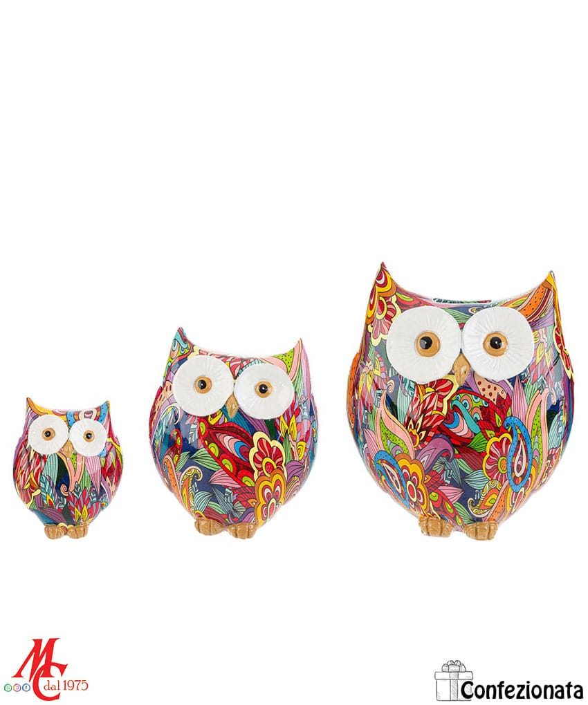 - Modello: Bomboniera Salvadanaio Gufo in Stile Pop-Art – Resina Multicolor – Completa di Confezione