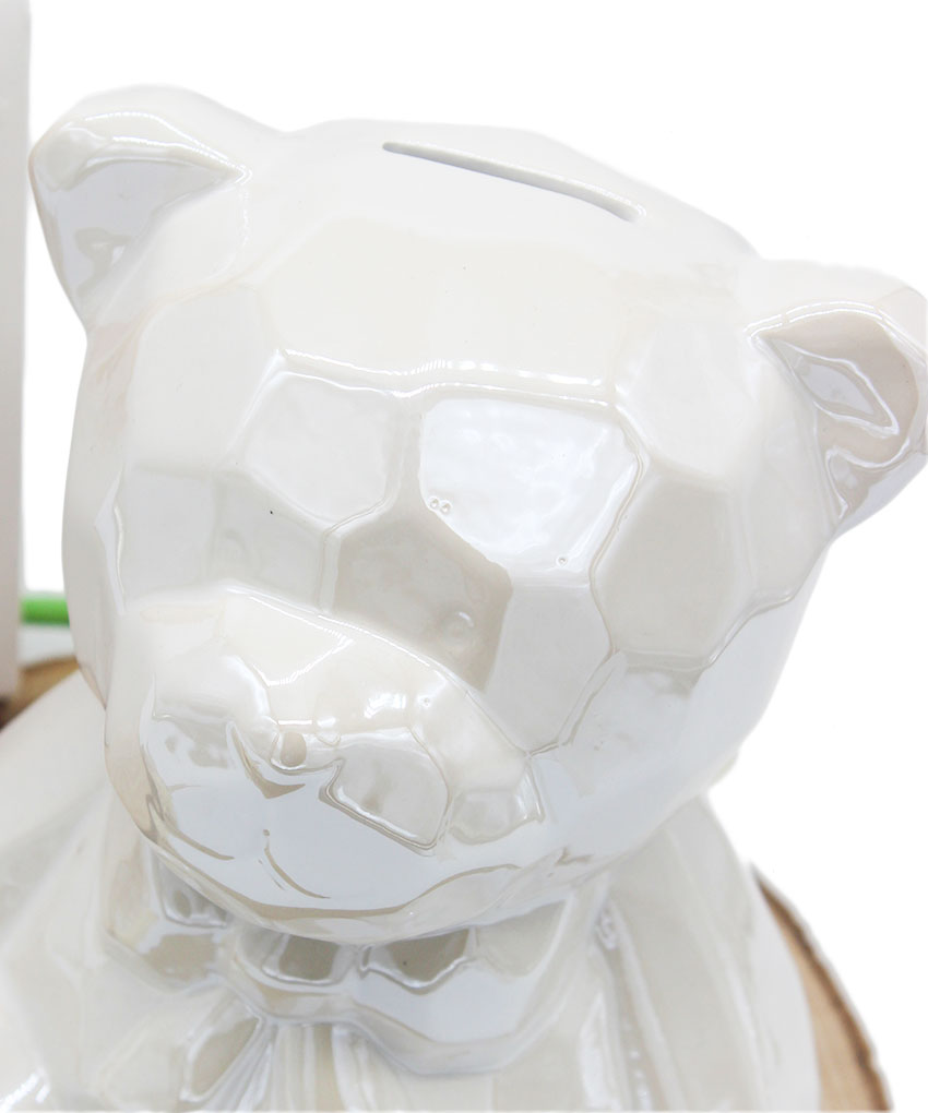 Salvadanaio Orsetto Bianco in Porcellana – Bomboniera Battesimo con Confezione Omaggio