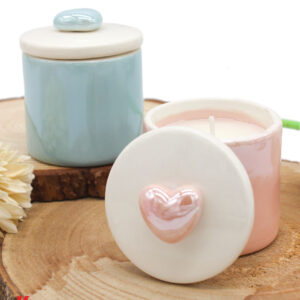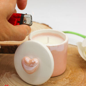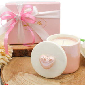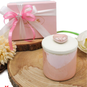Bomboniera Scatola Candela Soia in Porcellana Rosa – Confezione Elegante Inclusa