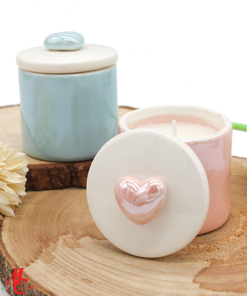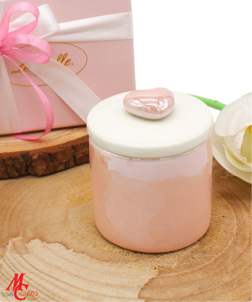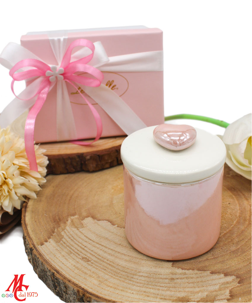 Bomboniera Scatola Candela Soia in Porcellana Rosa