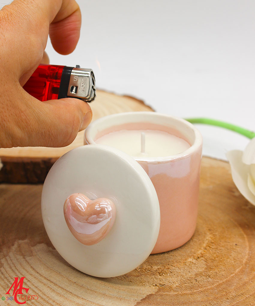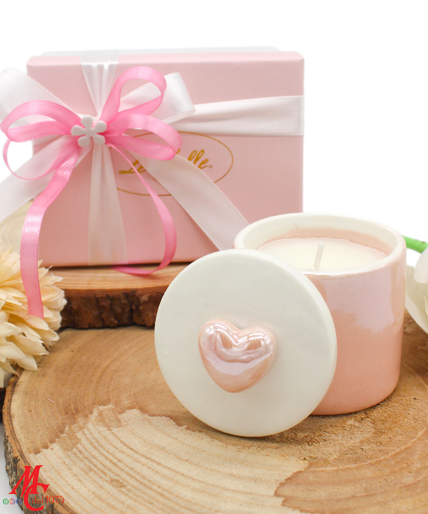 Bomboniera Scatola Candela Soia Porcellana Rosa