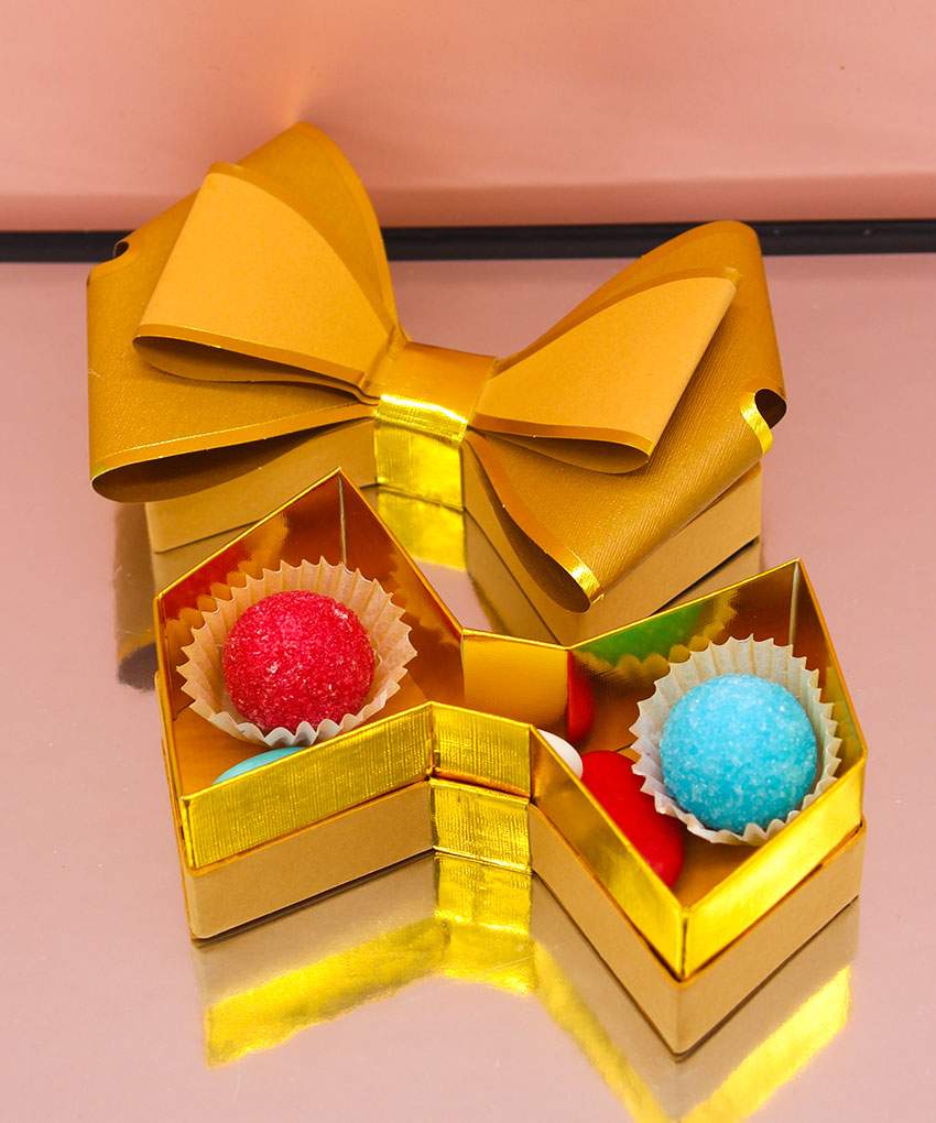 Questa scatolina degustazione unisce design ed eleganza, rendendola perfetta per qualsiasi celebrazione. Il fiocco 0 il papillon sono simboli di raffinatezza, ideali per eventi formali ma anche per festeggiamenti più informali in cui vuoi lasciare un ricordo speciale ai tuoi ospiti.