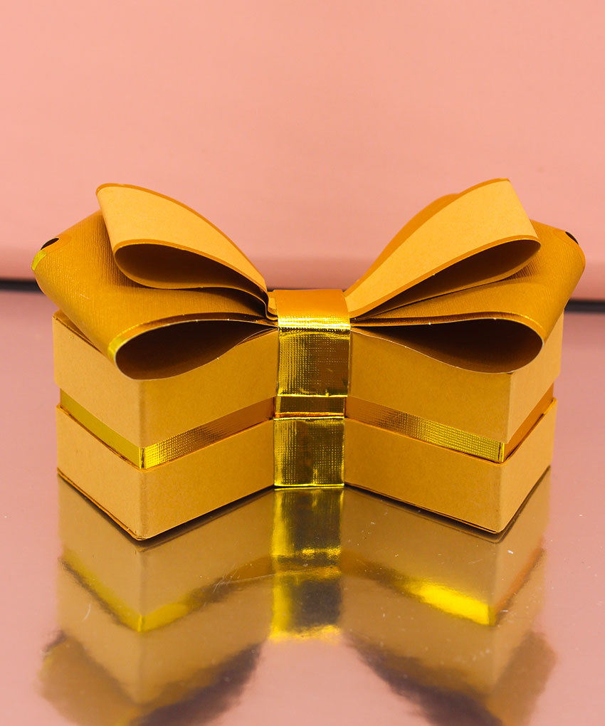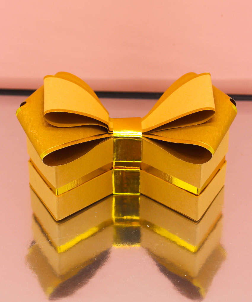 Bomboniera scatola degustazione a forma di fiocco Tortora, disponibile in vari colori. Acquistabile con o senza confetti. Perfetta per ogni evento speciale.
