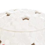 La scatola è decorata con un delicato motivo floreale in rilievo, conferendo un aspetto elegante e sofisticato. Il design total white la rende versatile e adatta a qualsiasi tema o stile di decorazione, garantendo un effetto visivo piacevole e armonioso.