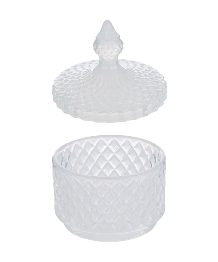 Realizzata interamente in vetro color Bianco, si distingue per la sua linea delicata e il fascino senza tempo, perfetta per custodire piccoli oggetti o impreziosire la casa con un tocco di stile.