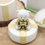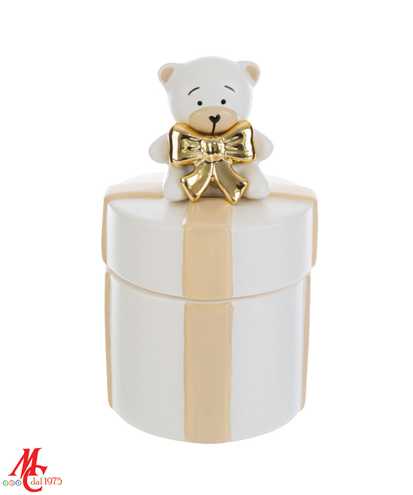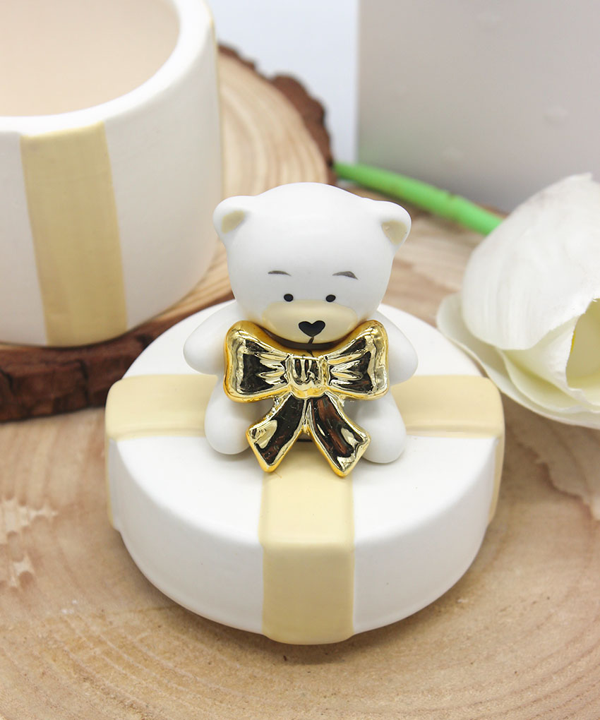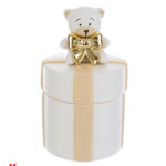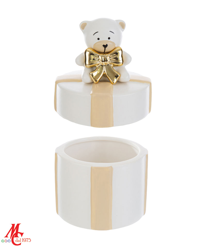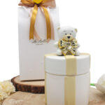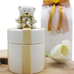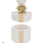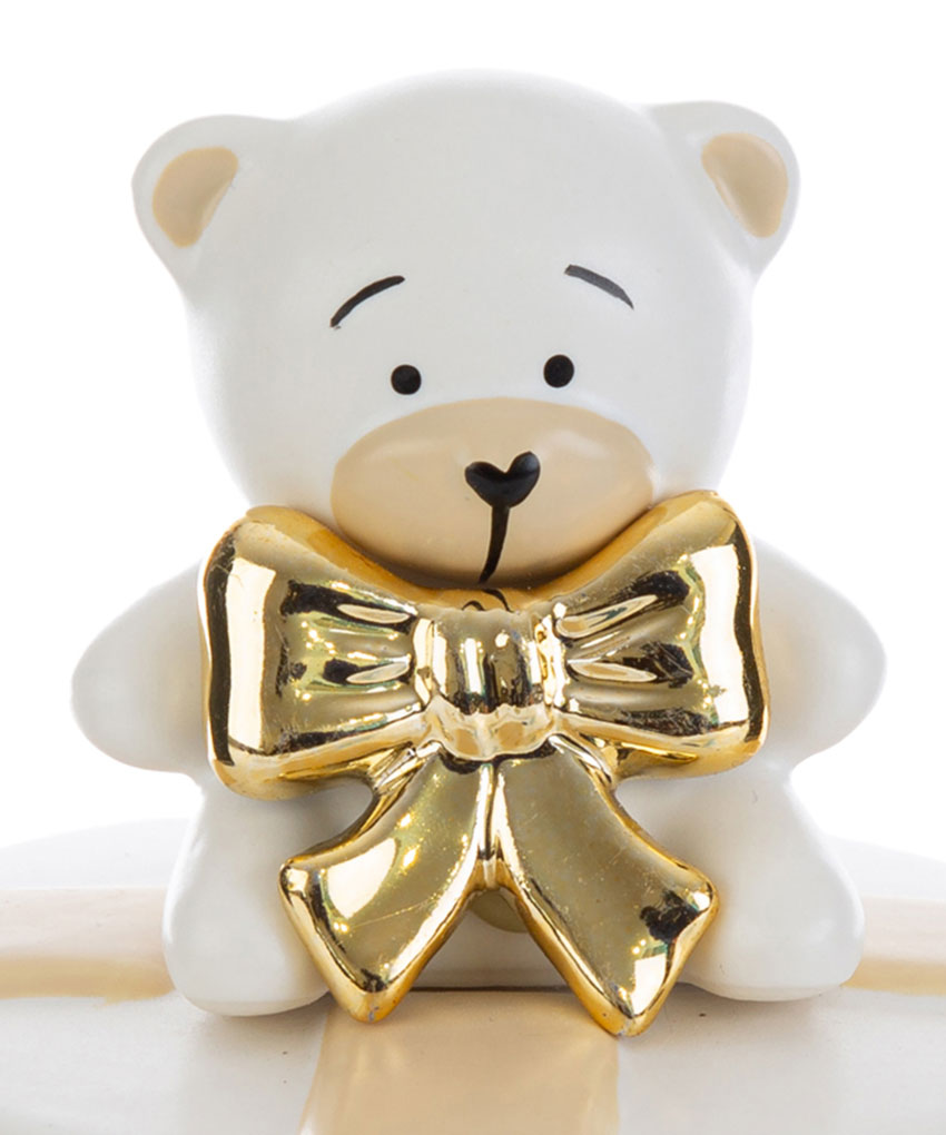 Bomboniera Scatola Orsetto in Porcellana Bianca con Fiocco Oro – Confezione Omaggio Inclusa