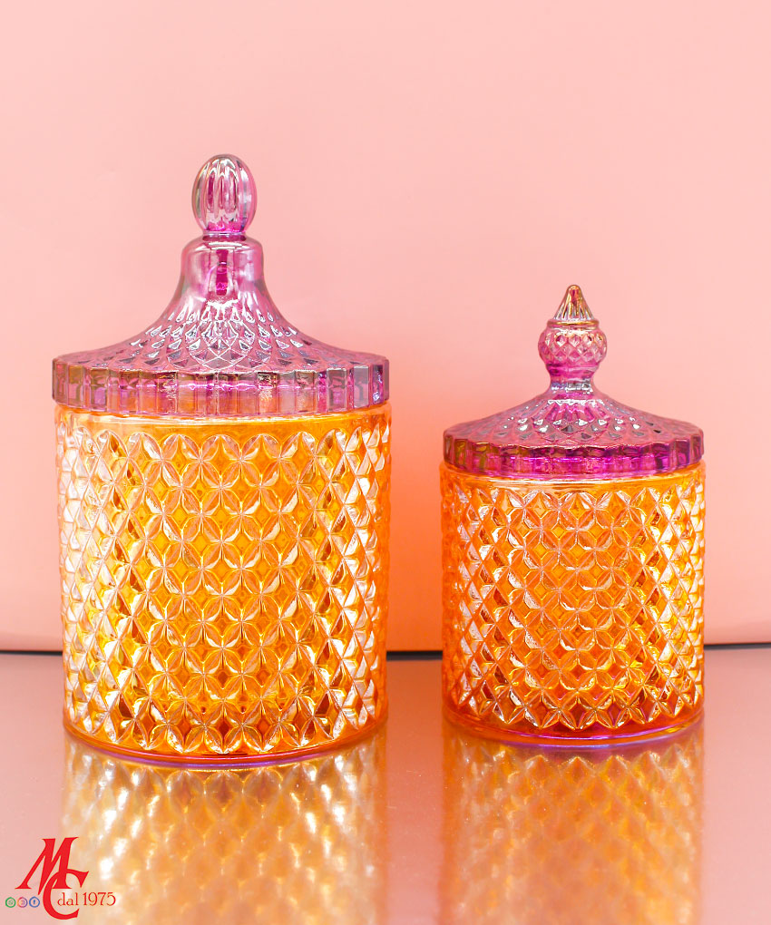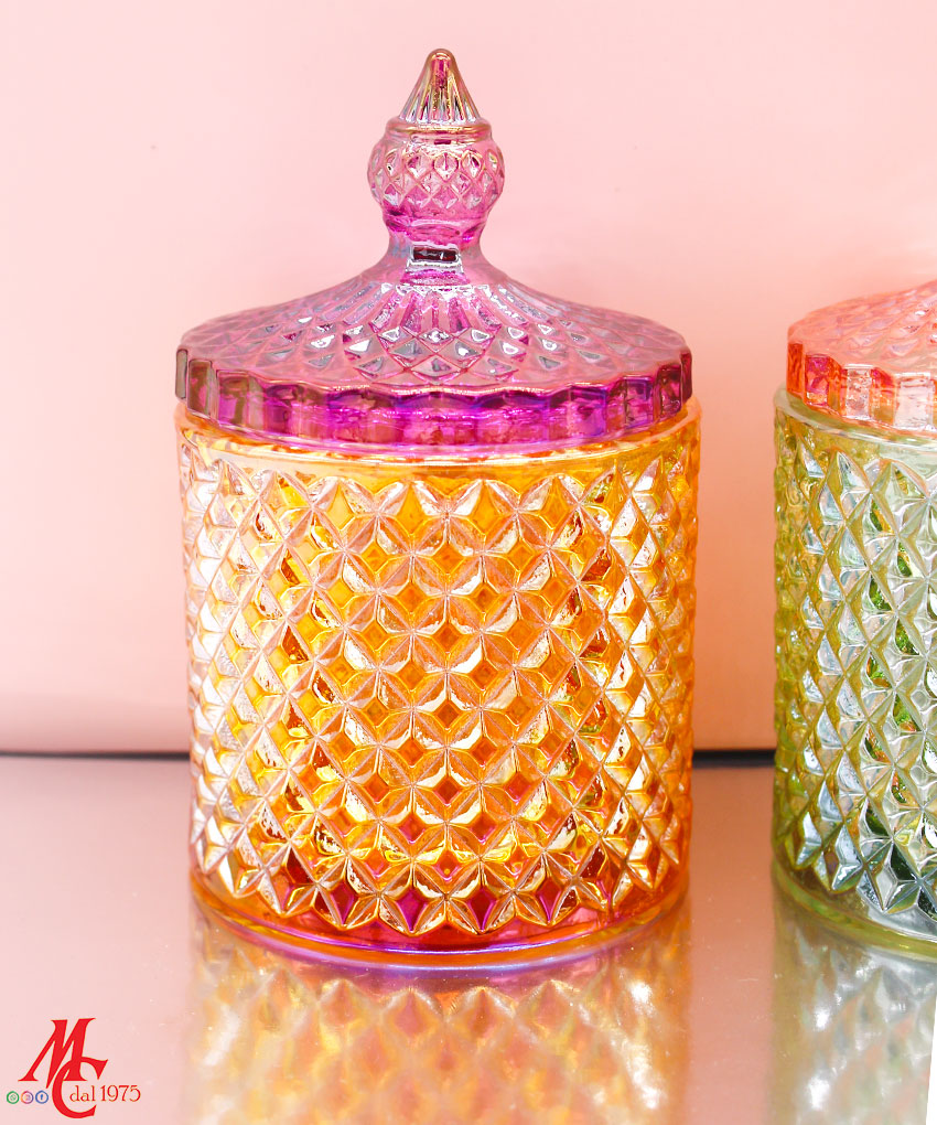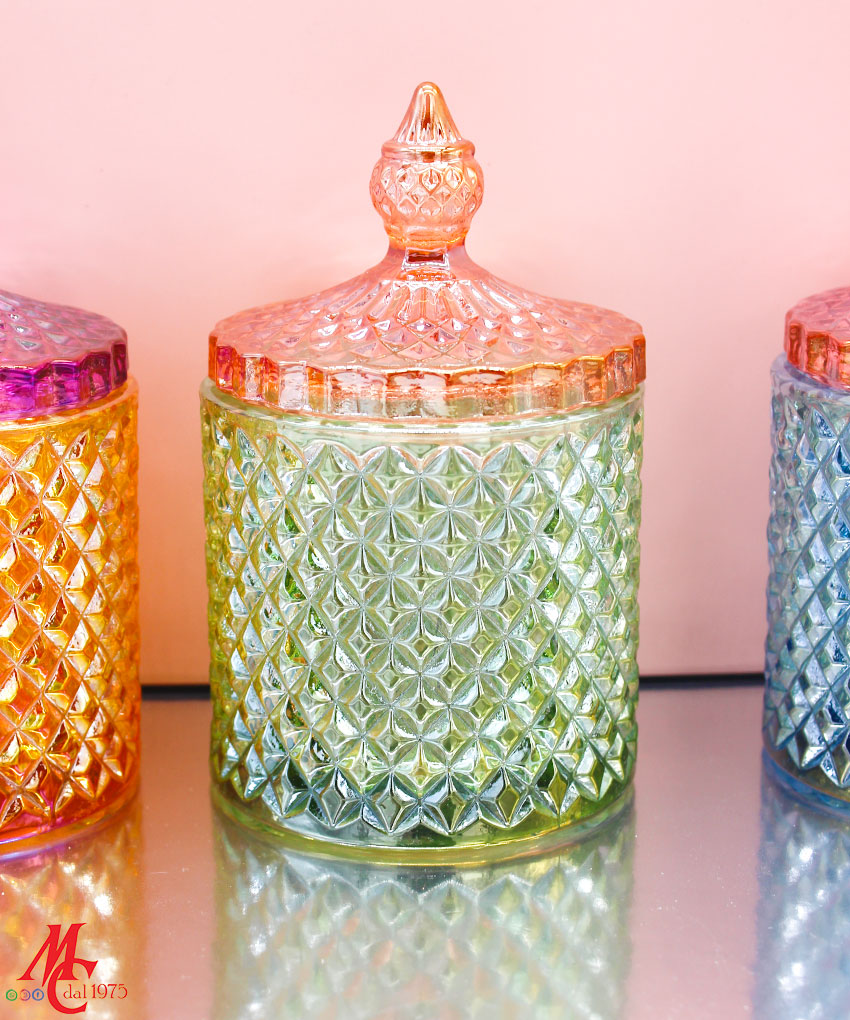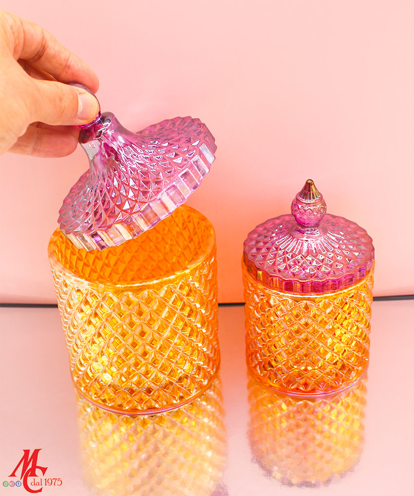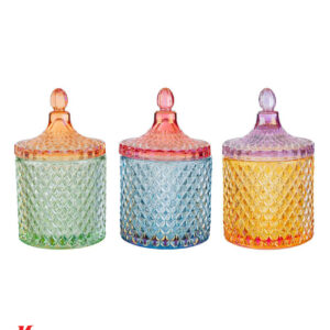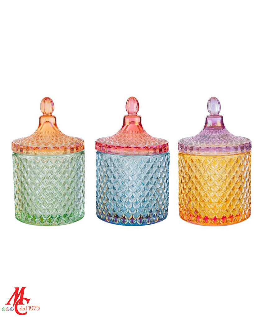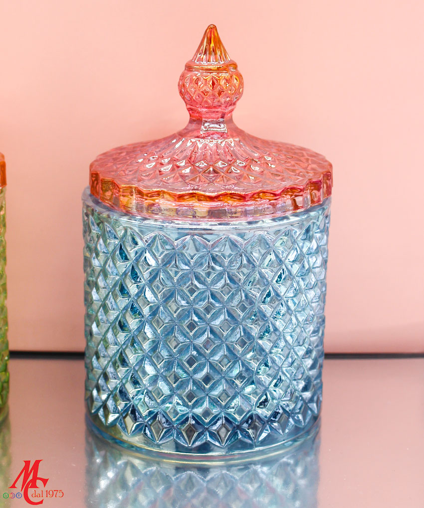 Un mix perfetto tra eleganza e versatilità. Questa raffinata scatola in vetro colorato, lavorata con cura, è disponibile in tre tonalità assortite e in due misure: