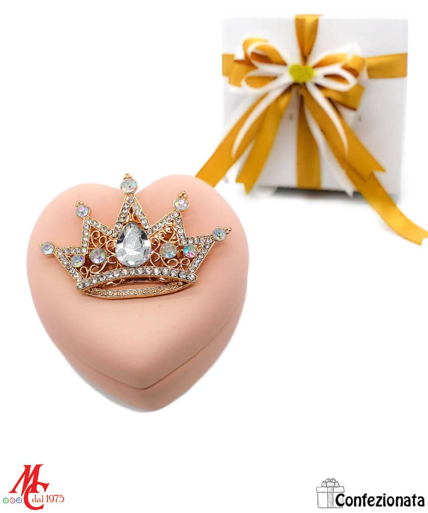 Bomboniera Confezionata – Scatolina Cuore Corona – Rosa e Oro