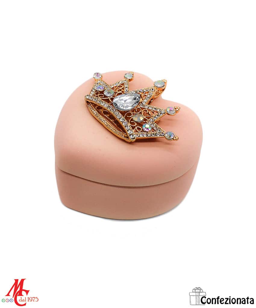 Bomboniera – Scatolina Cuore Corona – Rosa e Oro