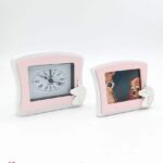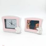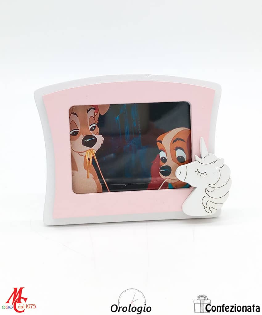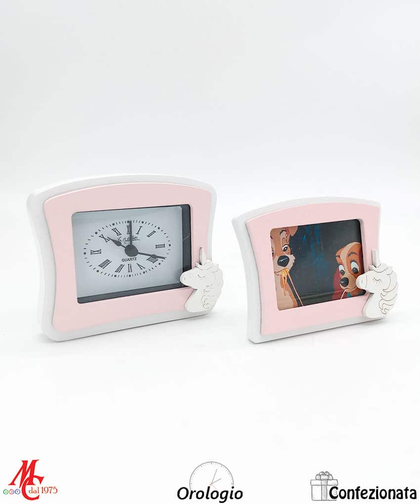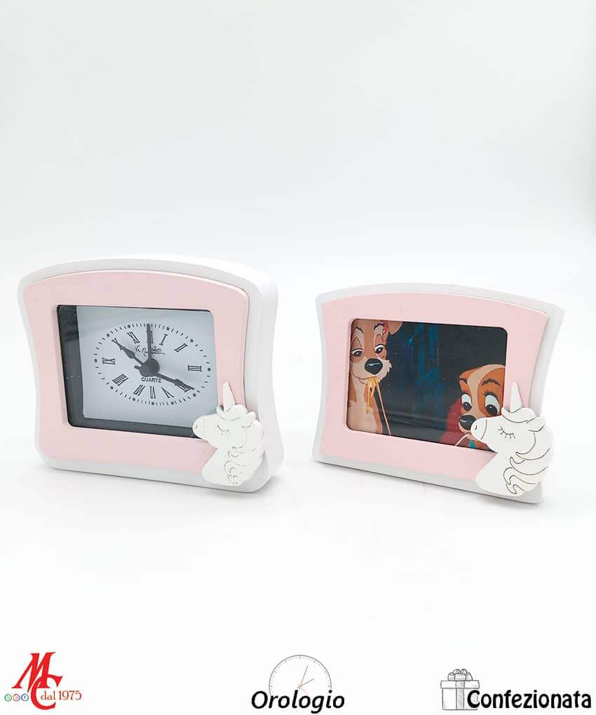 Bomboniera Set 2 pezzi Orologio da tavolo rosa con unicorno e Portafoto Rosa con unicorno
