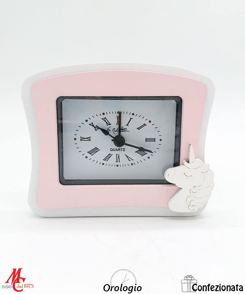 Descrizione del prodotto: Il Bomboniera Set 2 pezzi Orologio da tavolo rosa con unicorno e Portafoto Rosa con unicorno è un’affascinante scelta per una bomboniera che unisce funzionalità e stile. Questo set comprende un grazioso orologio da tavolo e un portafoto, entrambi decorati con motivi di unicorno in tonalità rosa.