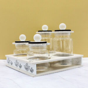 La presenza del legno inciso dona un tocco naturale e contemporaneo, valorizzando il design con dettagli curati e uno stile sobrio. La finitura color sabbia, neutra ed elegante, si integra facilmente in qualsiasi ambiente, rendendo il set perfetto per la cucina o come elemento decorativo.
