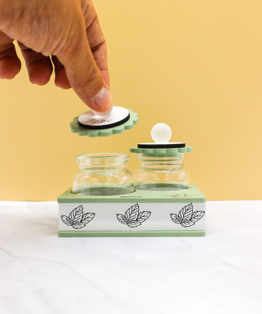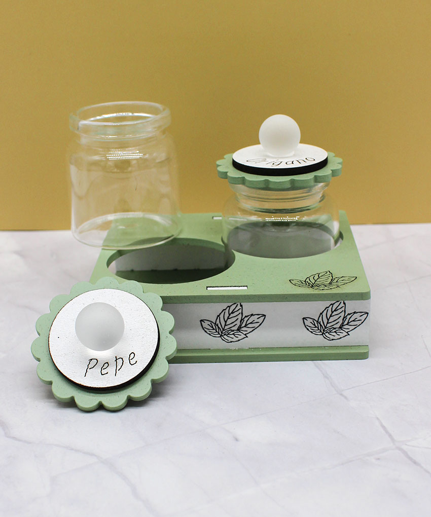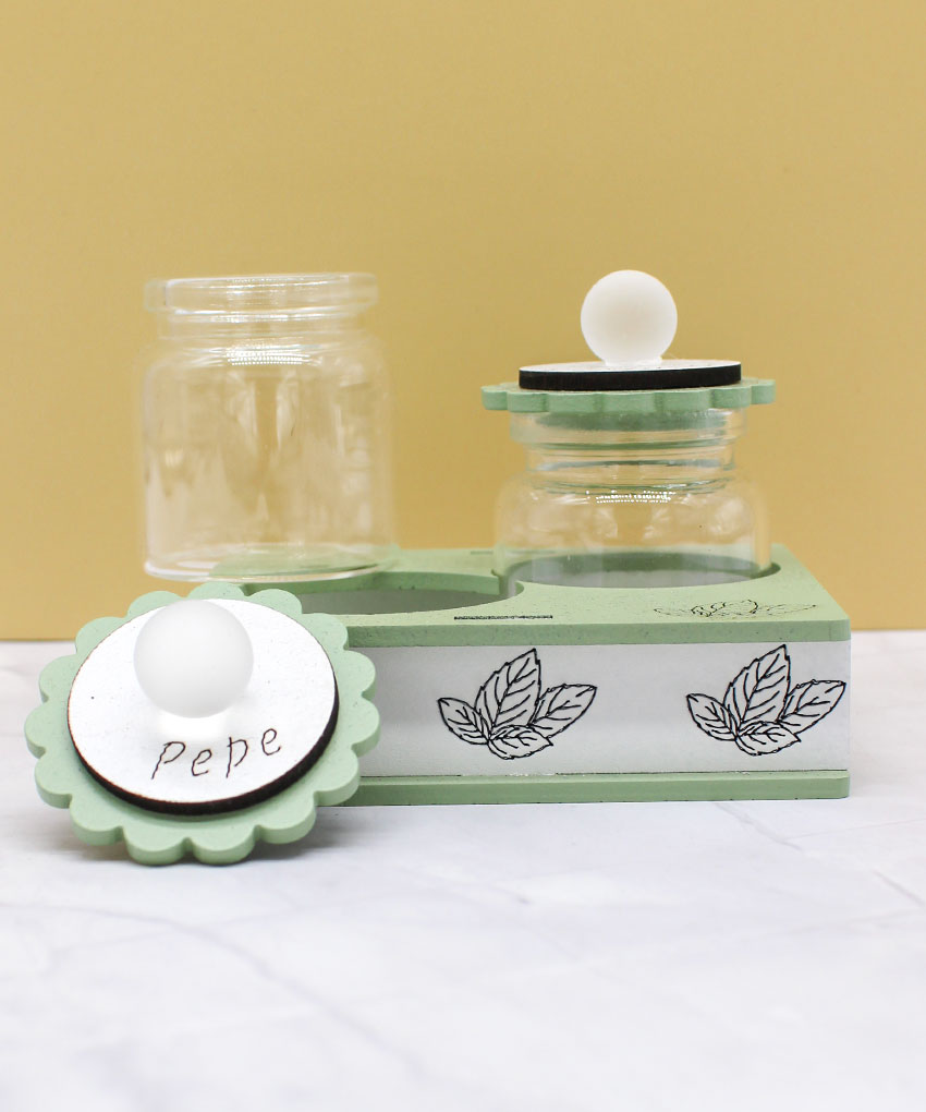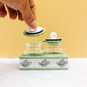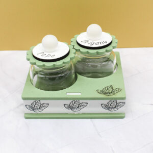 Il set è composto da due contenitori dedicati a pepe e origano, pensati per l’uso quotidiano e valorizzati da un design sobrio e contemporaneo. La finitura color verde salvia, delicata e di tendenza, si abbina perfettamente a cucine moderne e ambienti curati, conferendo un tocco naturale ed elegante.