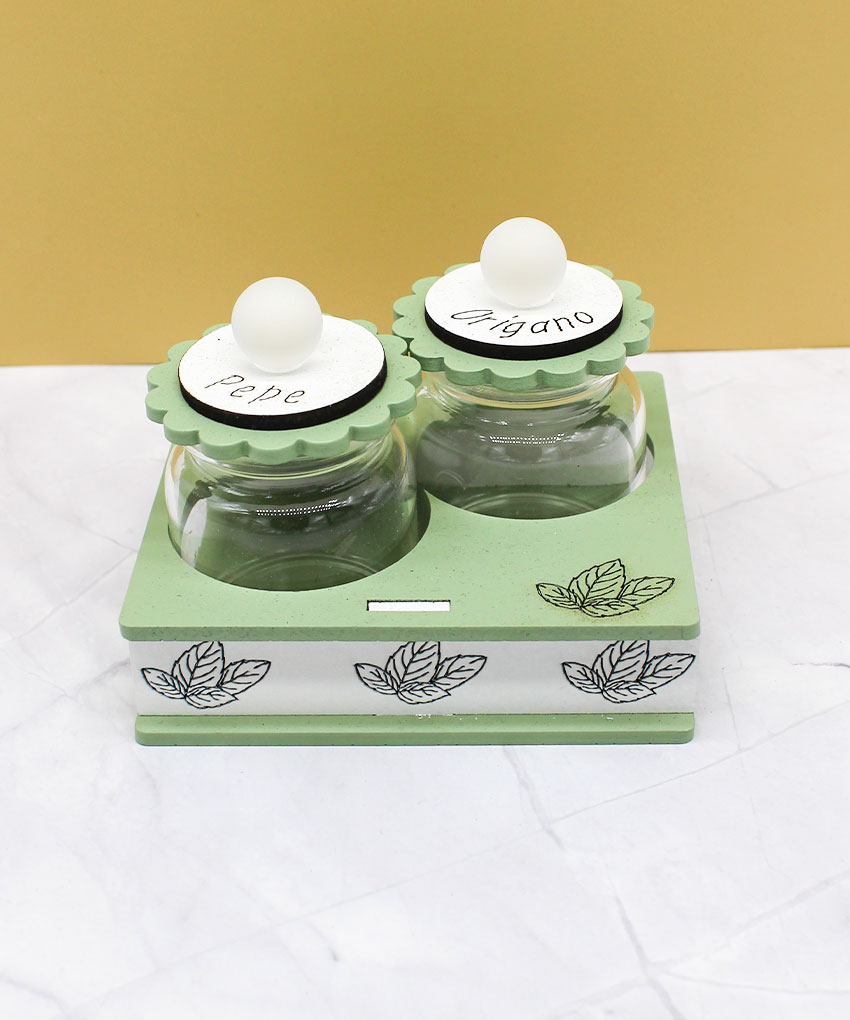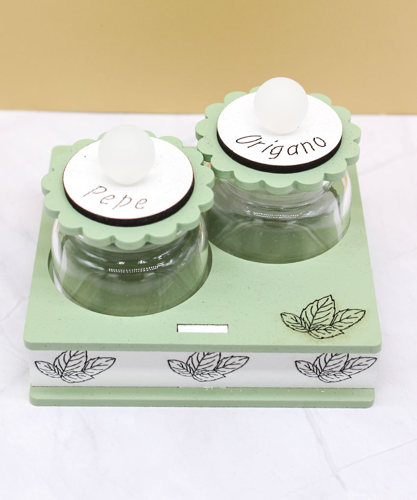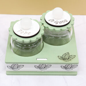 Bomboniera Set Porta Spezie Pepe e Origano Verde Salvia 10×8 cm