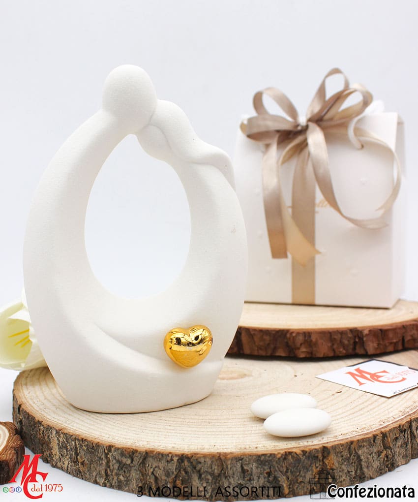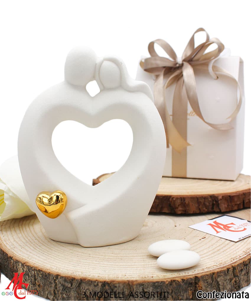 Bomboniera Sposini in Porcellana con Cuore Oro – Completa di Confezione