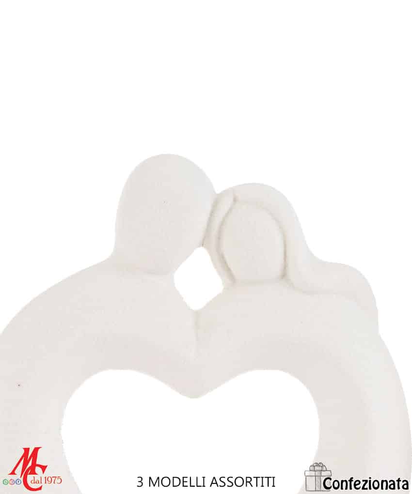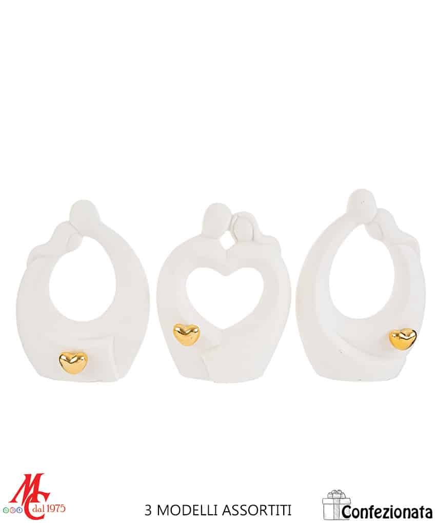 Bomboniera Sposini in Porcellana con Cuore Oro – Misure: 10x5xh.15CM