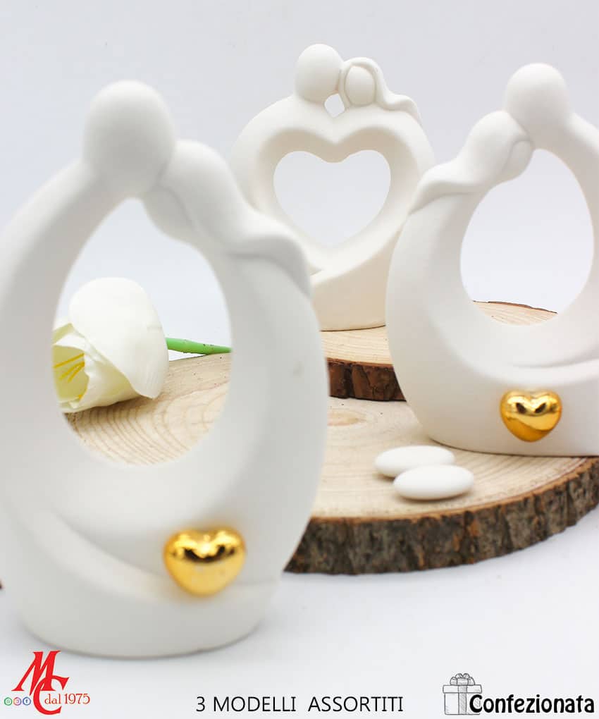 Bomboniera Sposini in Porcellana con Cuore Oro