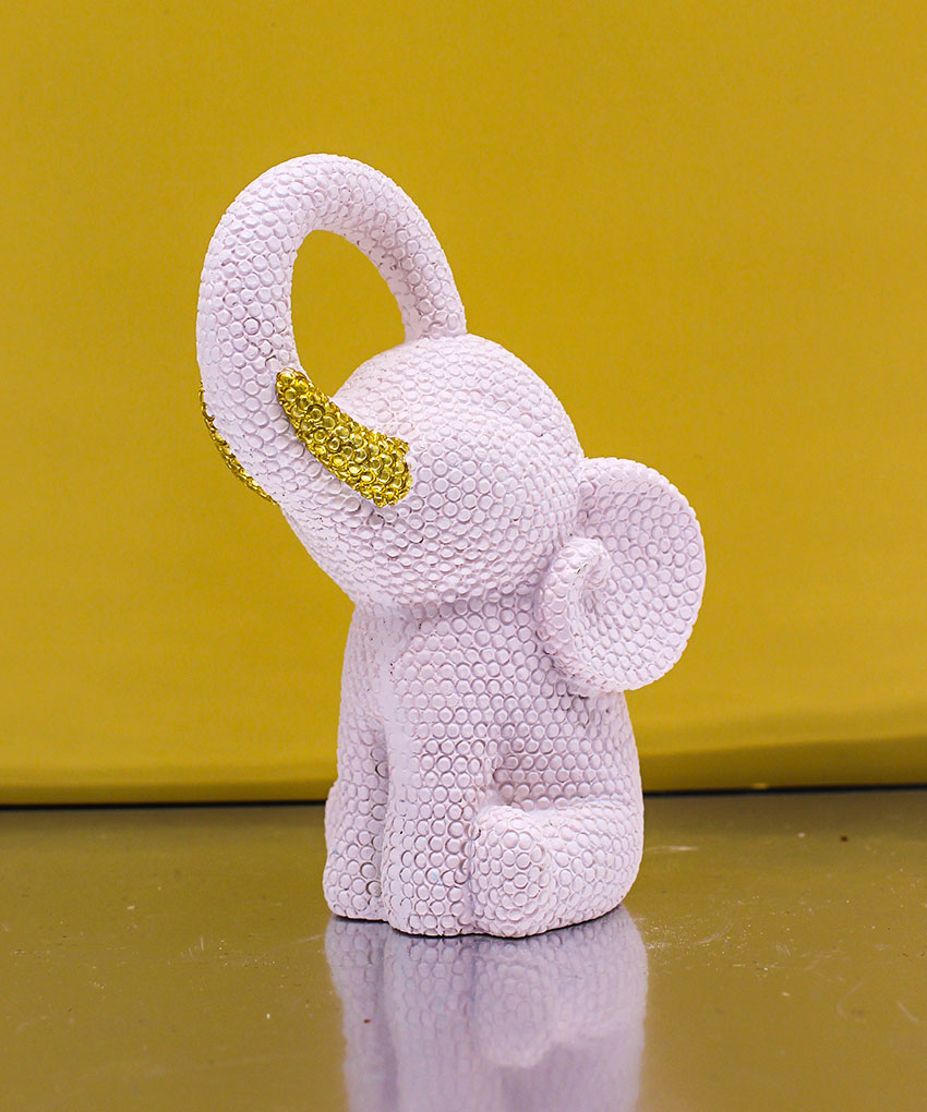 Bomboniera Statuina Elefantino Puntellato Rosa con Zanne Oro