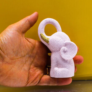 L’elefantino, simbolo di fortuna, protezione e dolcezza, rende questa bomboniera ancora più significativa e ricca di valore simbolico.