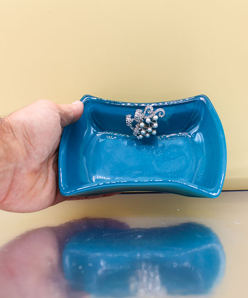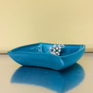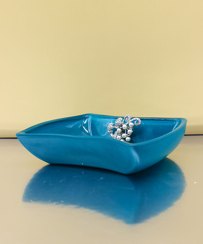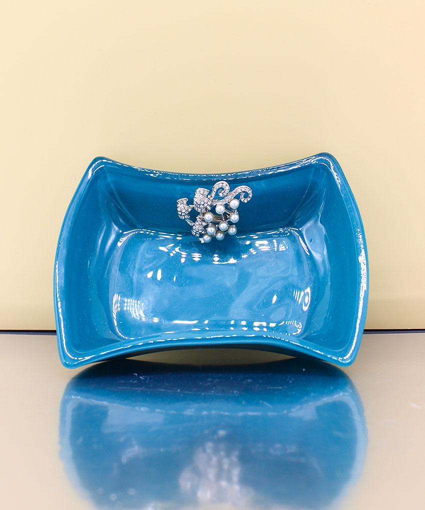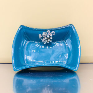Le perline decorative e gli strass luminosi impreziosiscono la superficie, creando un effetto ricercato e armonioso. La finitura color ottanio, moderna e sofisticata, valorizza il design rendendo questo svuotatasche perfetto per ambienti contemporanei. Le dimensioni di 15 × 12 cm lo rendono pratico per contenere piccoli oggetti di uso quotidiano, mantenendo al tempo stesso un’elevata resa estetica.