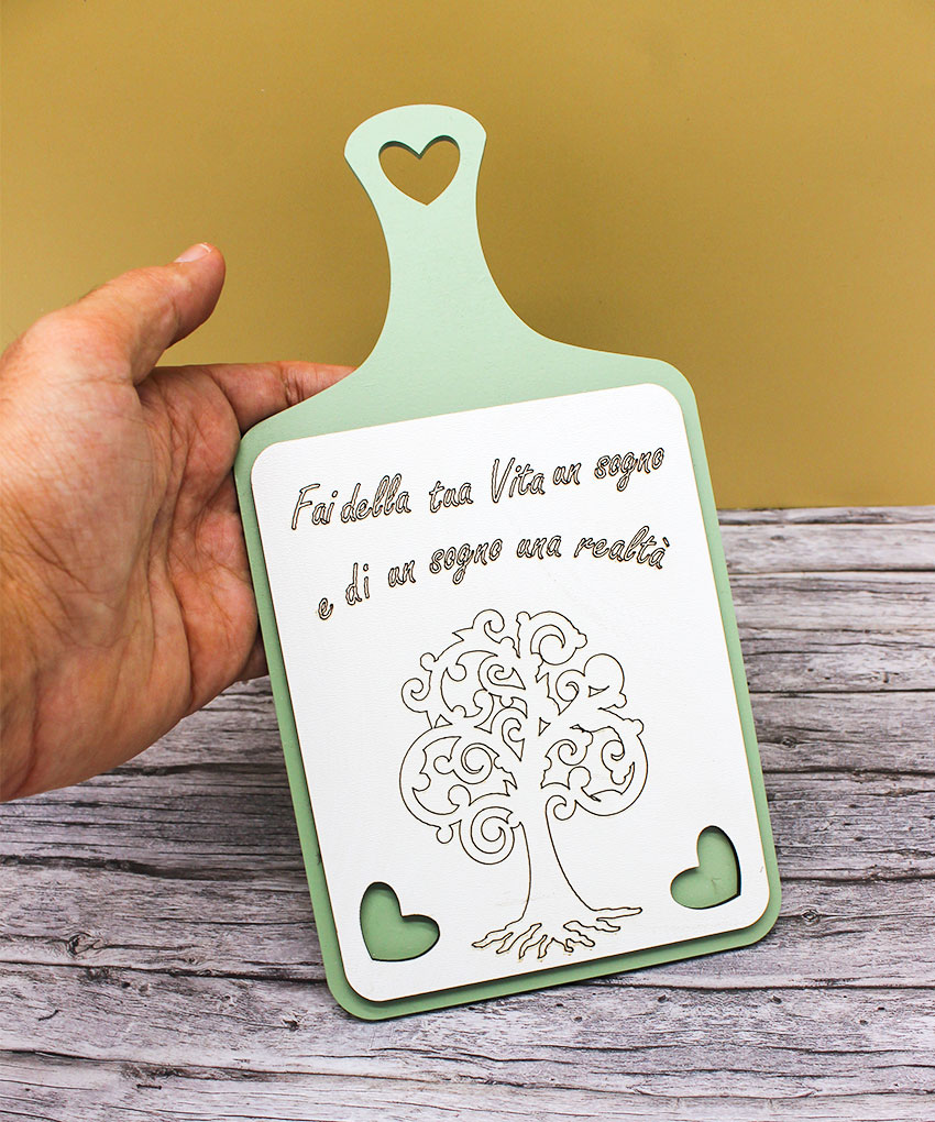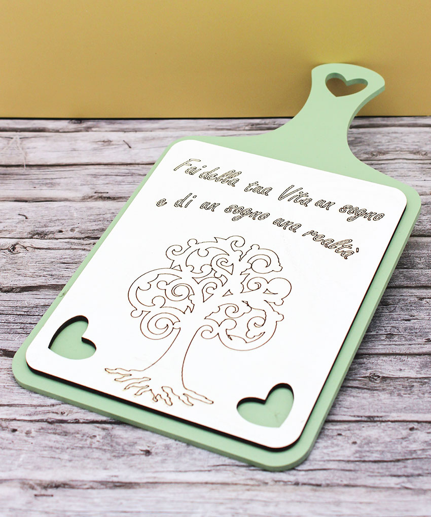 Bomboniera Tagliere Albero della Vita Verde Salvia 13×24 cm