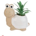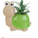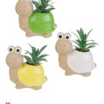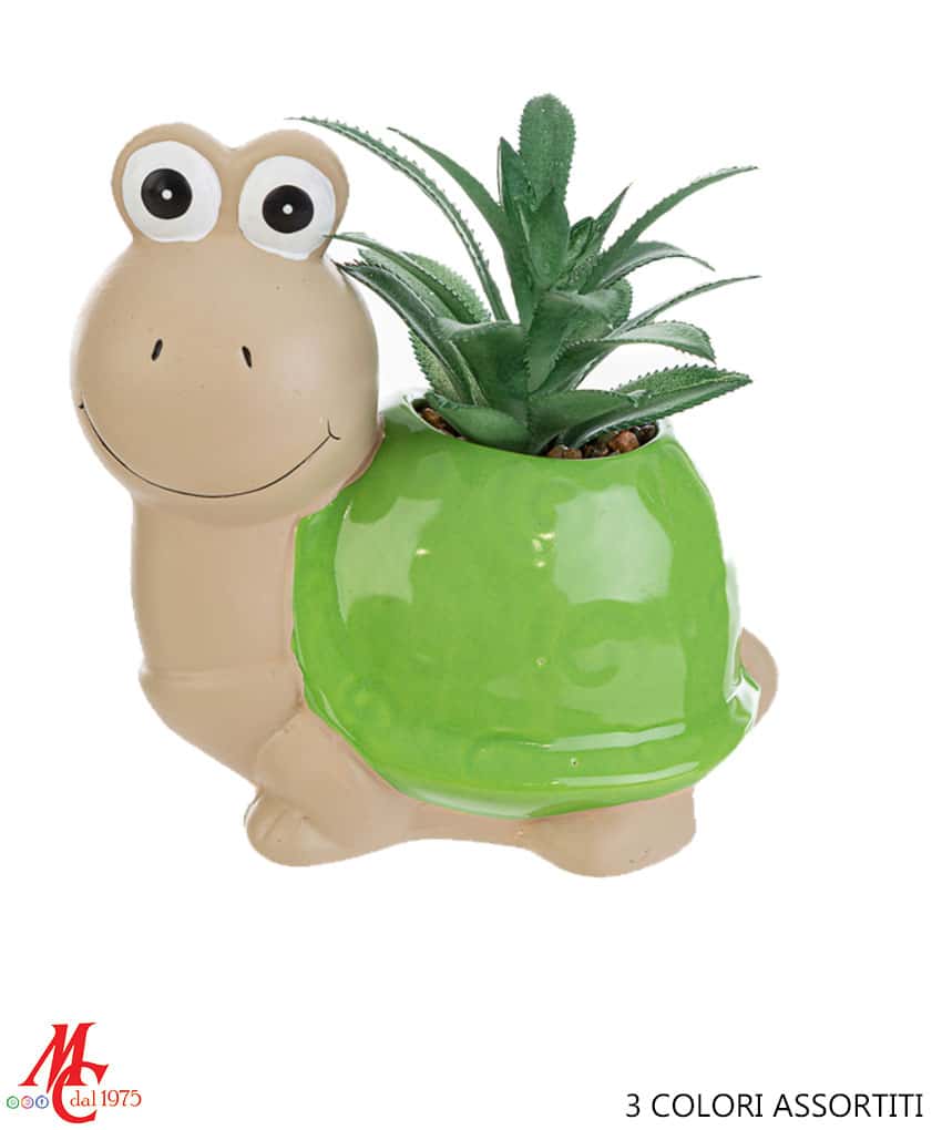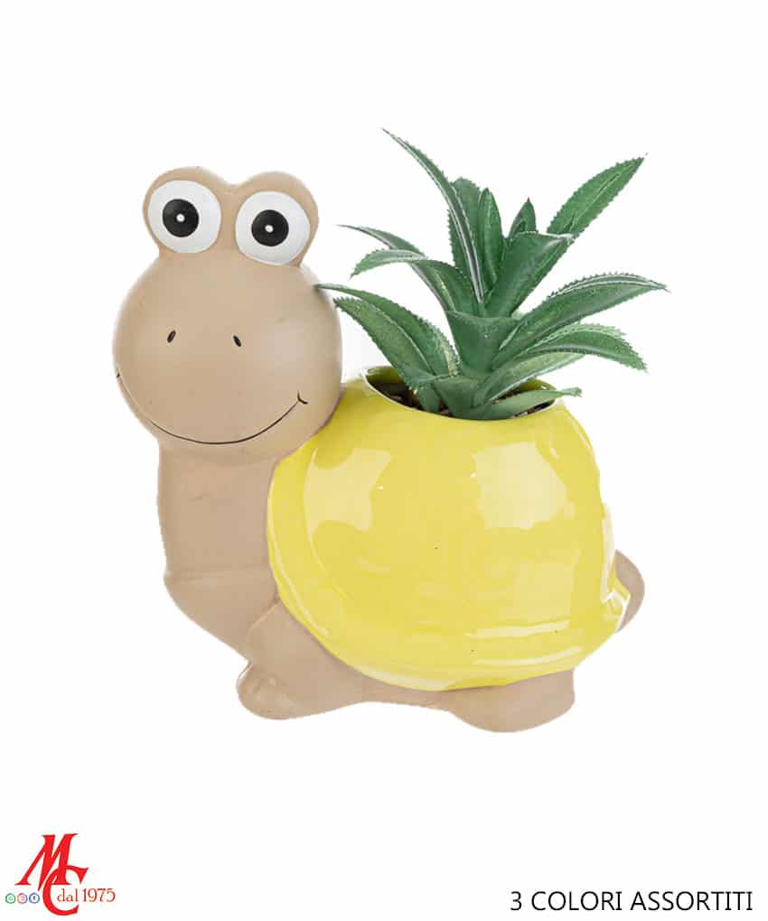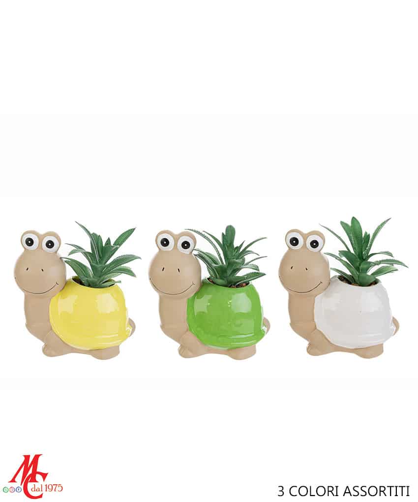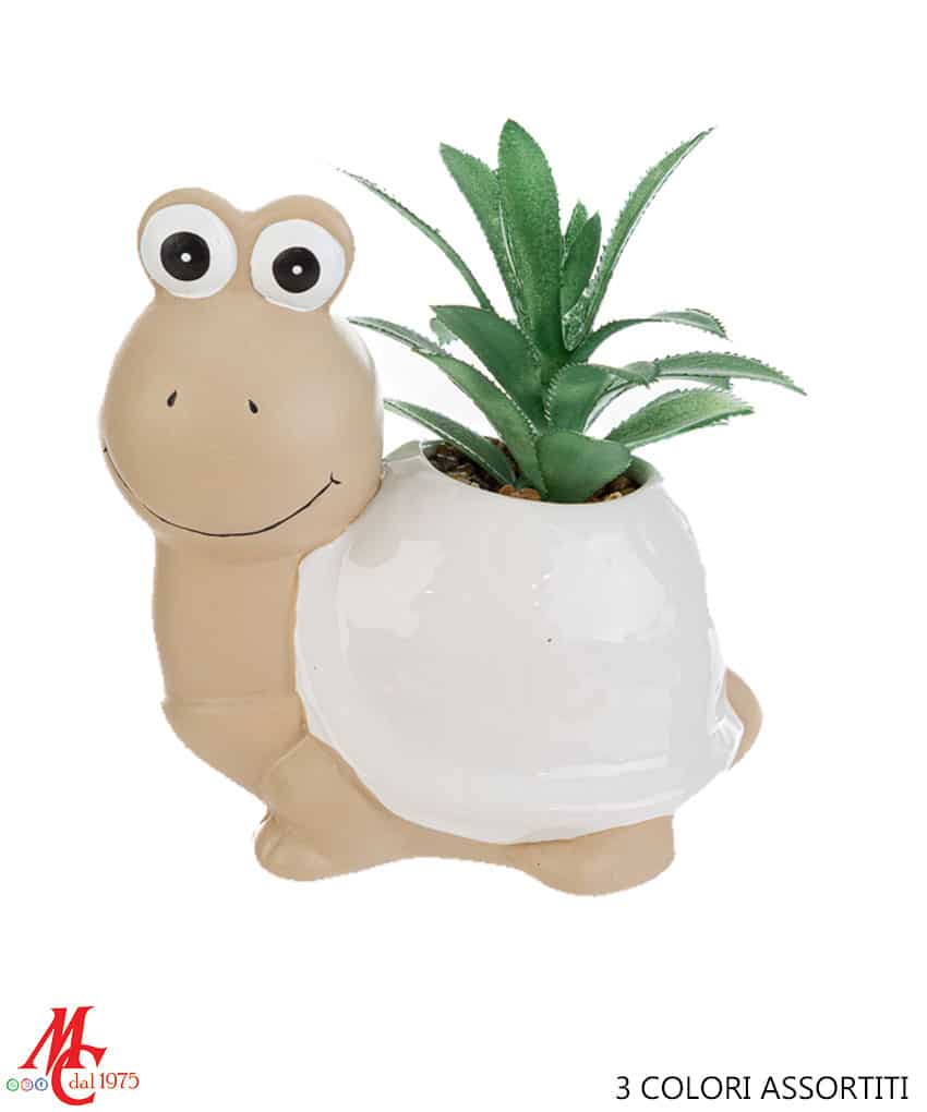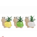 Bomboniera Tartaruga Piantina Artificiale – 3 Colori Assortiti – Misure 9x13xh.16 cm – Materiale Ceramica (Confezione Non Inclusa)