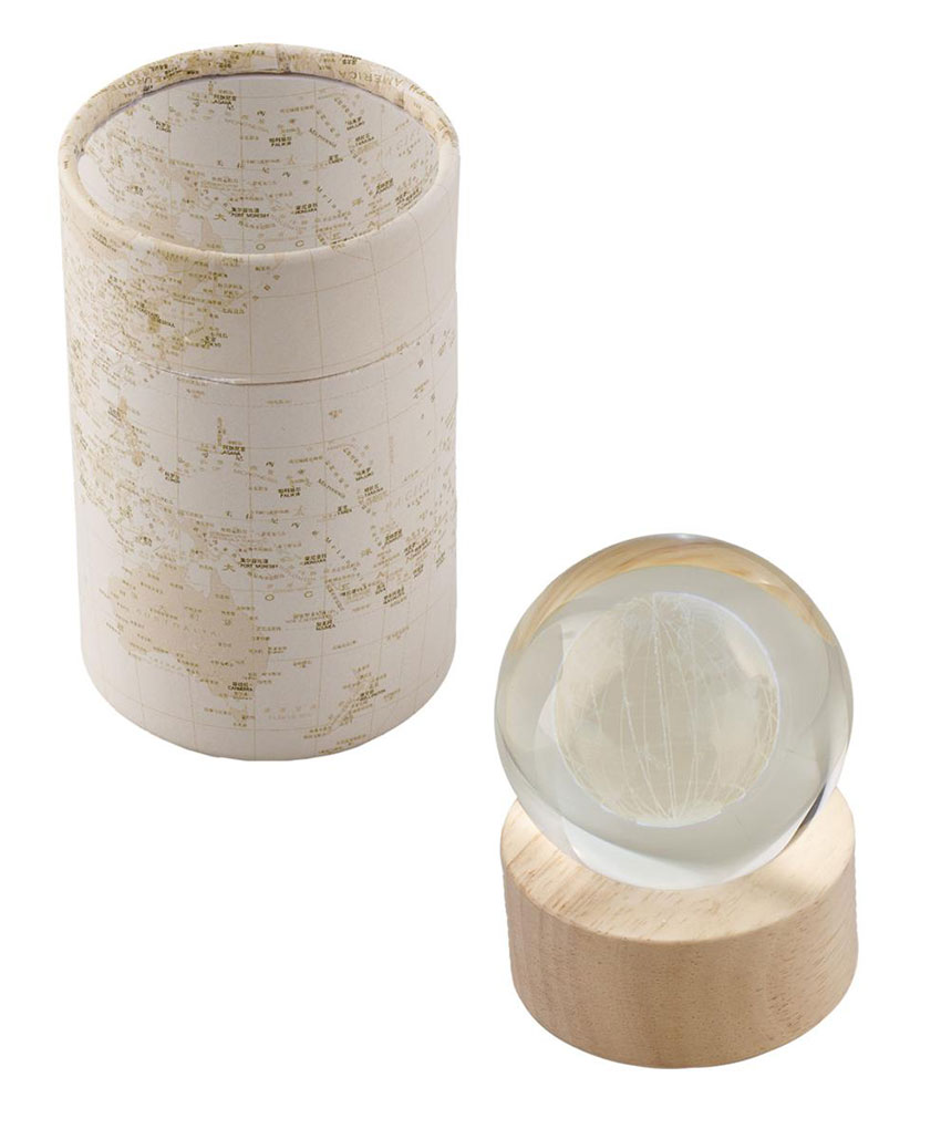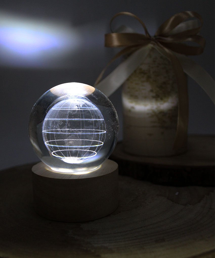 Questa bomboniera esclusiva presenta un mappamondo in cristallo dal diametro di 6 cm, posizionato su una base in legno naturale che esalta la sua eleganza. L’illuminazione LED dona un effetto suggestivo, rendendolo un complemento d’arredo perfetto per qualsiasi ambiente.