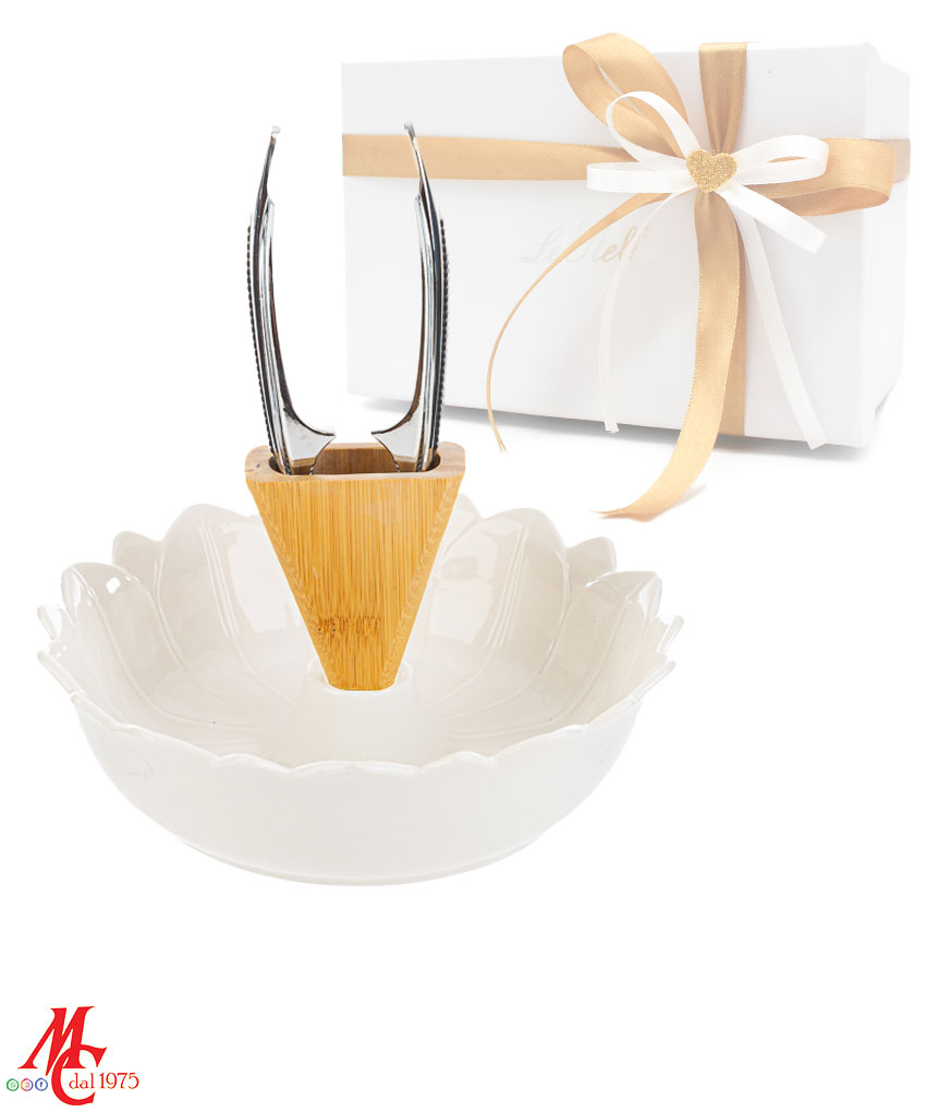 Bomboniera Utile: Antipastiera Schiaccianoci in Porcellana con Manico in Legno – Completo di Confezione