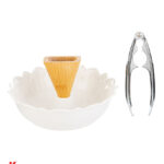 La Antipastiera Schiaccianoci in Porcellana con Manico in Legno è progettata per chi desidera unire stile e funzionalità. Il manico in legno non solo facilita l’utilizzo dell’antipastiera come schiaccianoci, ma aggiunge anche un tocco rustico ed elegante. La porcellana bianca di alta qualità offre un look sofisticato e si integra perfettamente con qualsiasi stile di arredamento.