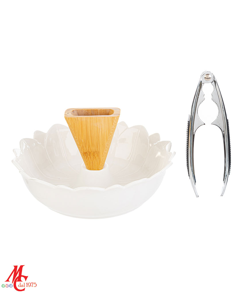 Bomboniera Utile: Antipastiera Schiaccianoci in Porcellana con Manico in Legno